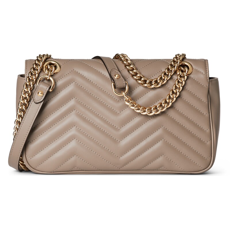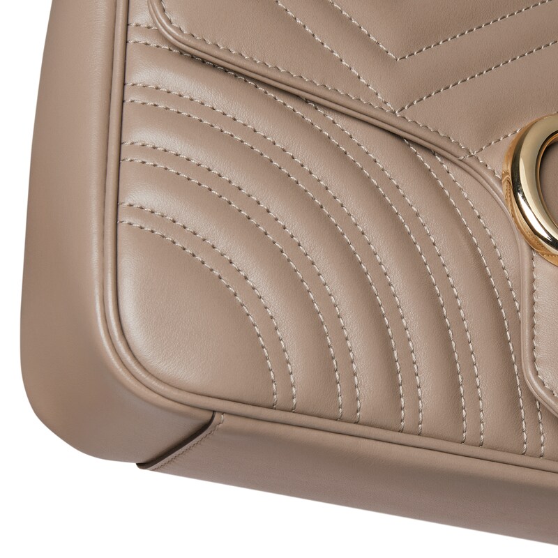 这款GG Marmont系列手袋装点了20世纪70年代首次推出的典藏双G标识,尽展品牌经典款式的魅力底蕴。双G首字母标识不仅呈现在该款式的名称中,还在手袋正面的重叠字母配件中绽放光彩。这款优雅手袋采用柔软的绗缝皮革制作,再现源自佛罗伦萨的斐然匠艺。