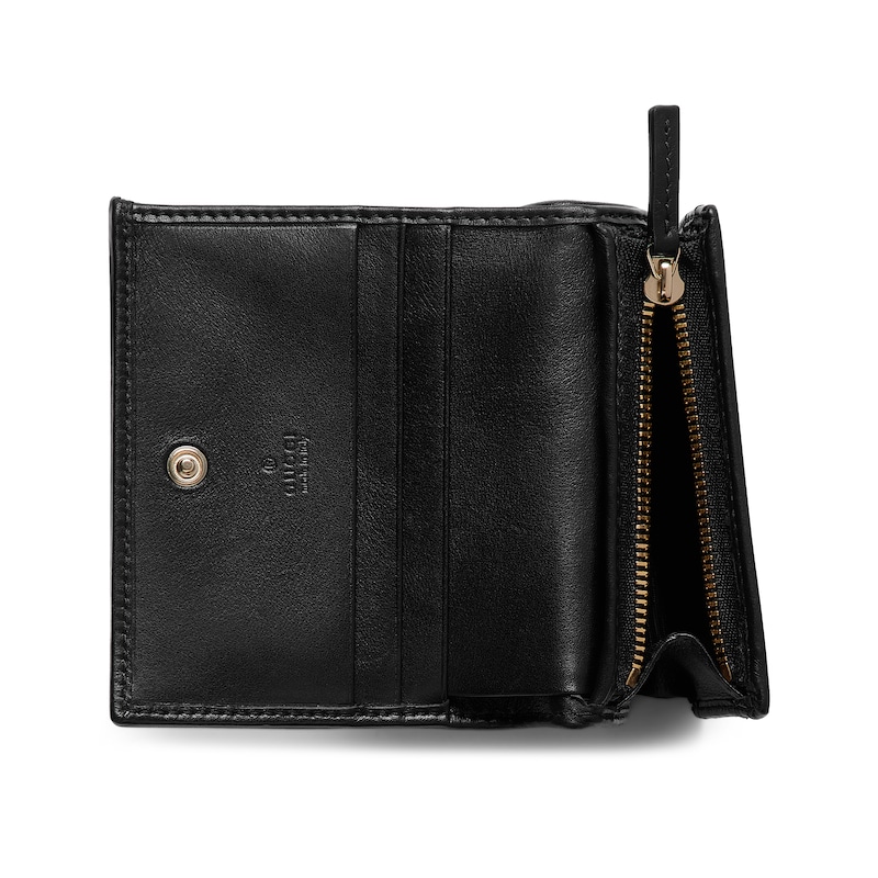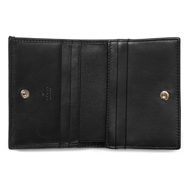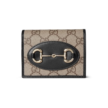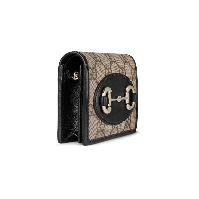 创作总监Sabato De Sarno呈现全新GG字母图案涂层织物,打造柔软、轻盈且耐用的精湛材质。这款Gucci Horsebit 1955系列卡包以米色和深棕色匠心呈现,巧妙融入雅致的黑色皮革滚边。