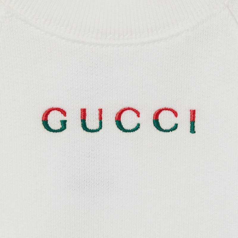 从精致刺绣到通体印花,2025早秋儿童系列不断焕新演绎品牌经典图案。这款婴儿卫衣选用针织棉布匠心制成,Gucci刺绣细节以红绿织带同款配色呈现。