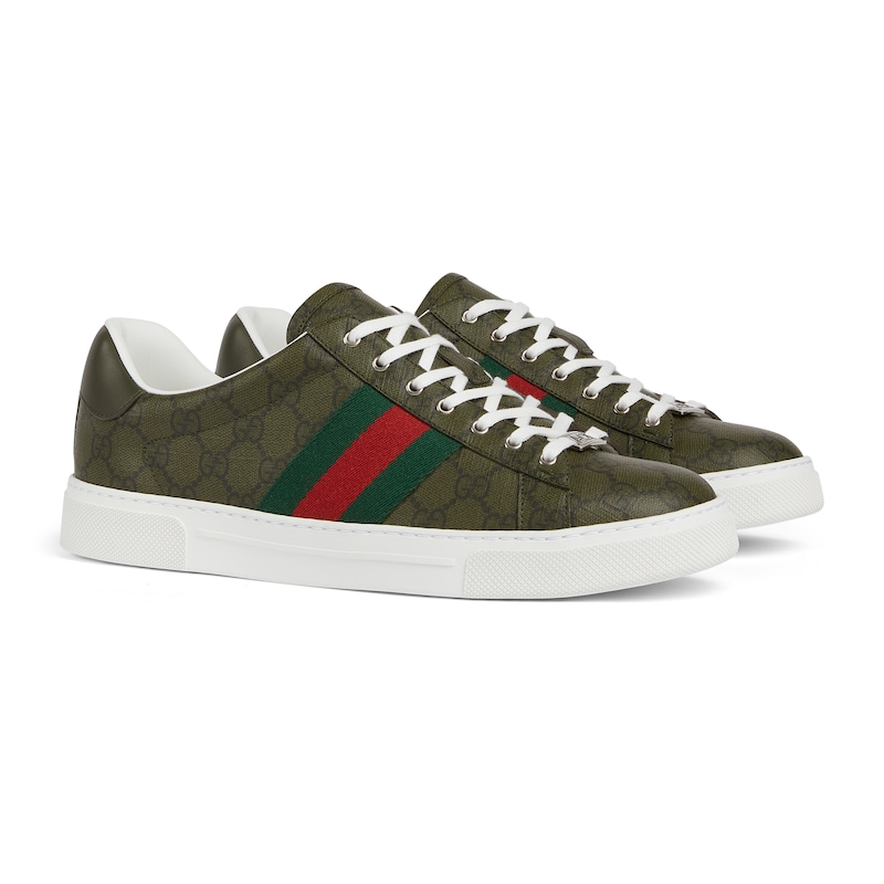 自问世以来,Ace系列运动鞋已成为品牌叙事的主角之一。全新系列呈现特色低帮设计,搭配别致细节,焕新诠释运动鞋版型。“ACE”金属标牌闪耀于系带固定处,GG Supreme精致塑就挺括鞋型。Gucci经典条纹织带令整款设计更添魅力。