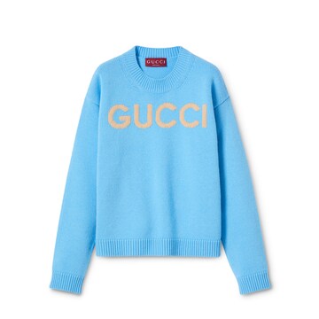 2026早春女士成衣系列致意Gucci时尚造型,以混色搭配趣致糅合品牌典藏元素与佛罗伦萨传承意蕴,呈现简洁风格与极繁设计等多元单品。这款上衣以浅蓝色柔软羊毛匠心打造,巧妙融入Gucci嵌花,一展别致韵调。