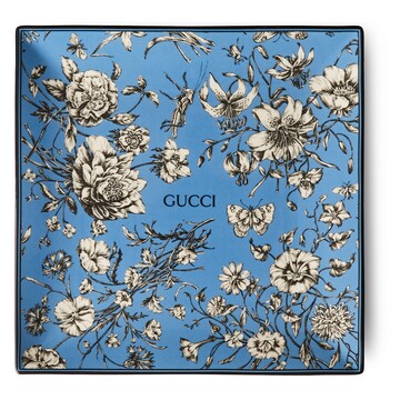 Gucci Décor家饰系列从品牌标志性符号元素中撷取灵感,巧妙融入缀饰Gucci花卉素描印花的瓷质首饰托盘以及多款瓷质单品之中。同色调图案点缀多款单品,灵感源自大自然的印花仿若精致的手绘素描,令整件单品魅力倍添。