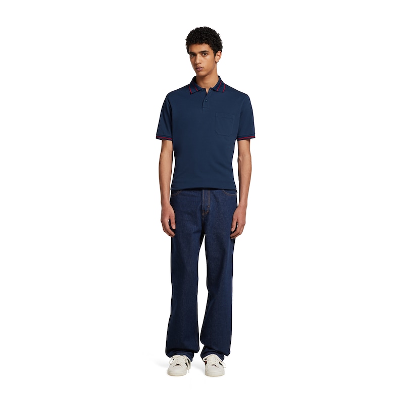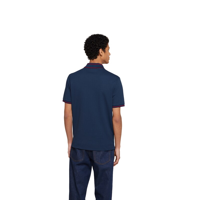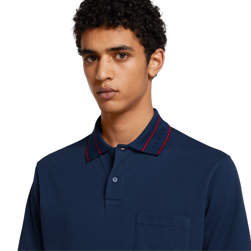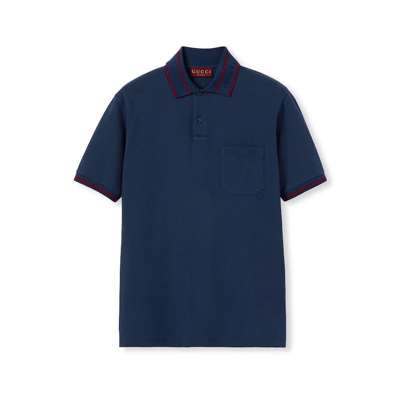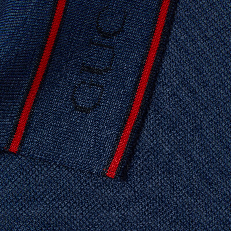 品牌与网球世界于20世纪70年代结下不解之缘;如今,两者强力再续良缘。标志性单品聚焦条纹织带等典藏细节和创新面料。这款海军蓝珠地棉翻领T恤的衣领处匠心缀饰Gucci提花细节。