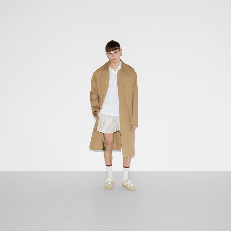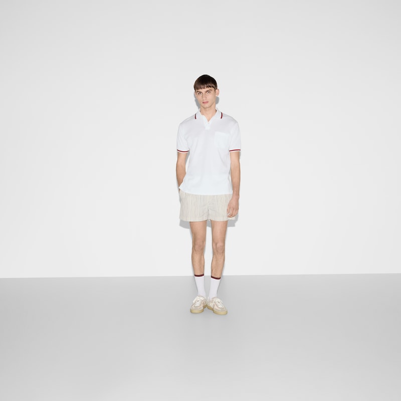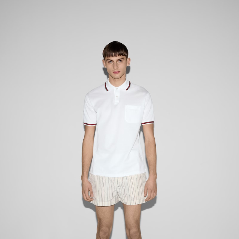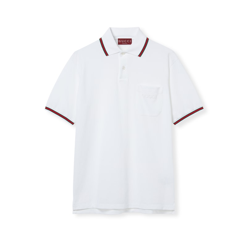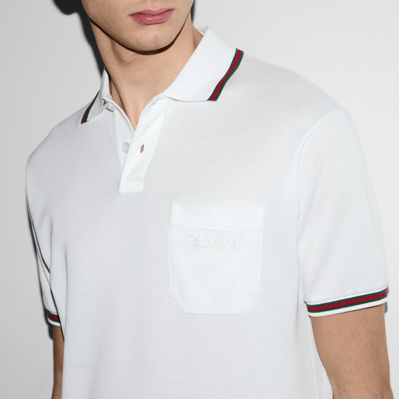 Gucci 2025早春系列挚献多款经典风格单品,针织衫和Polo衫质感柔软,以内敛巧致细节出彩,令日常造型更显迷人。这款常规版型Polo衫以弹力珠地棉匠心演绎,搭配Gucci刺绣及领口织带细节,更显精巧趣致。