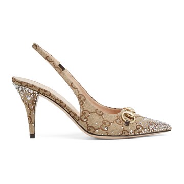 这款鞋履精心点缀璀璨夺目的多刻面水晶,为经典款式注入别样风情。标志性字母图案帆布添上一丝隽永优雅韵味,致敬品牌的不朽传承。这款设计经过精心制作,华丽之余不失张扬前卫,尽情表达个性主张。