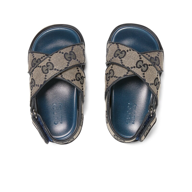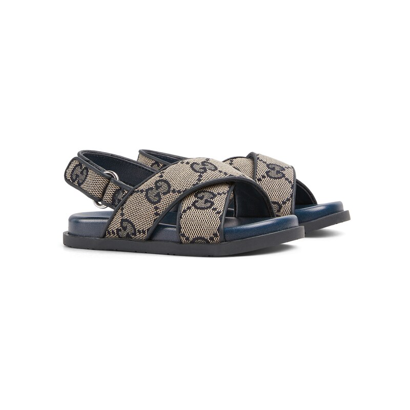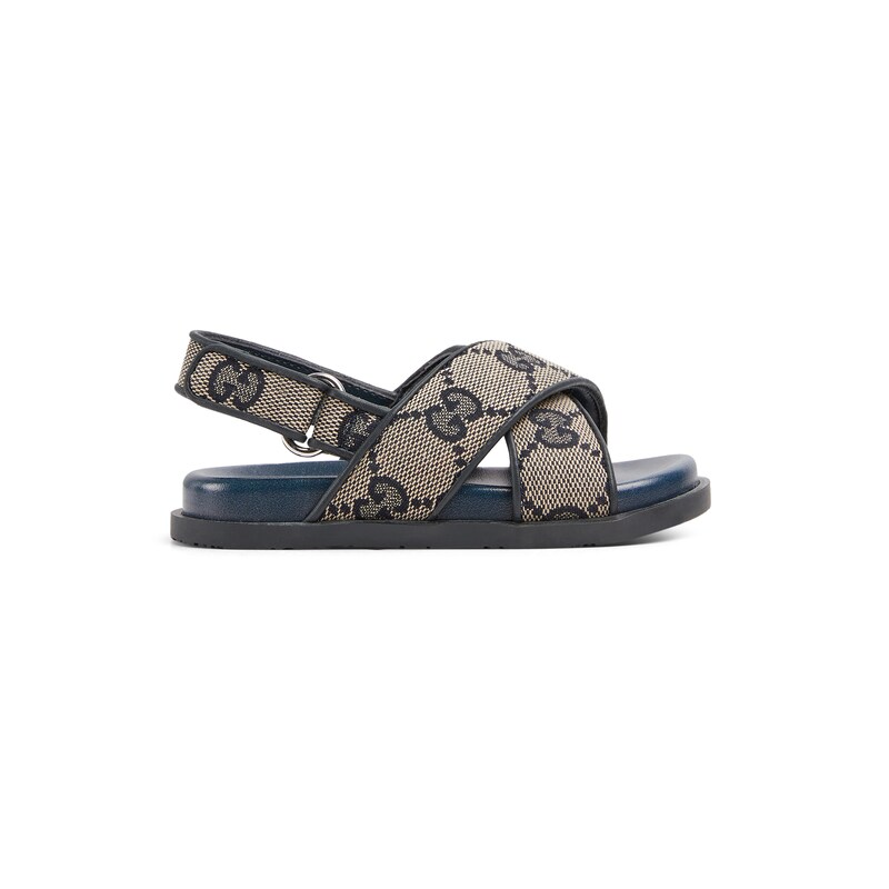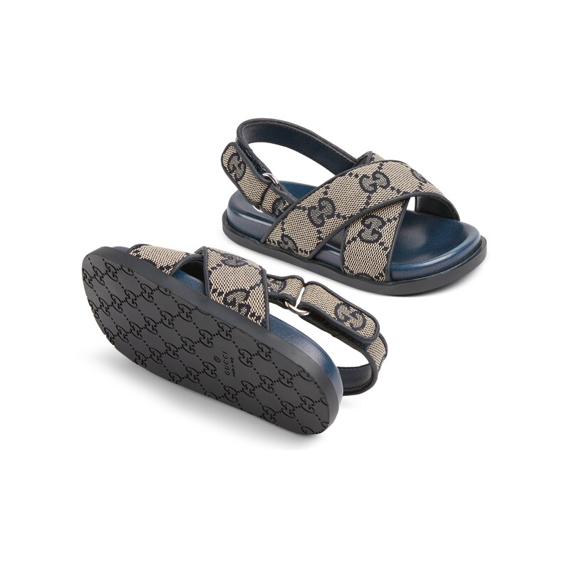 从精致刺绣到通体印花,古驰2025早春儿童系列不断焕新演绎品牌经典图案。这款幼儿凉鞋采用米色和蓝色GG帆布打造,搭配可调节魔术贴扣,让穿着更加方便舒适。