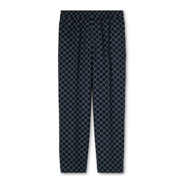 该系列中,特色GG图案通过不同的纺织技术呈现,打造丰富的视觉效果。这款长裤采用蓝色和浅蓝色GG软拉绒法兰绒匠心打造。