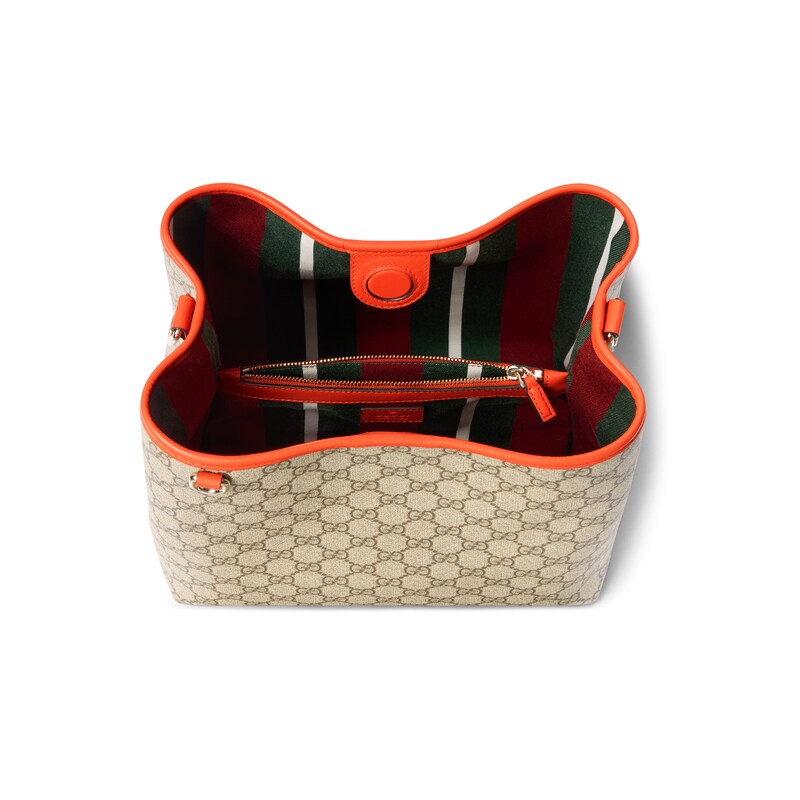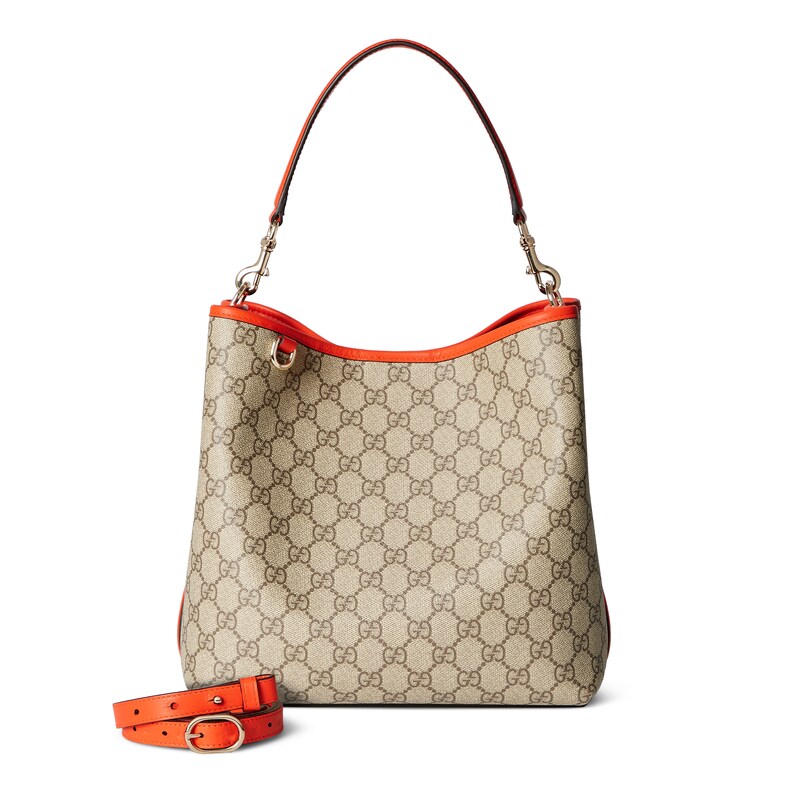 GG Emblem系列焕新诠释品牌的隽永优雅风范和精湛工艺。这款水桶包尽释实用设计美学,配有两个主隔层和一个中央拉链口袋,随附皮革肩带实现斜挎背携。