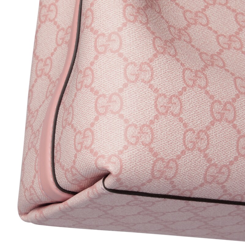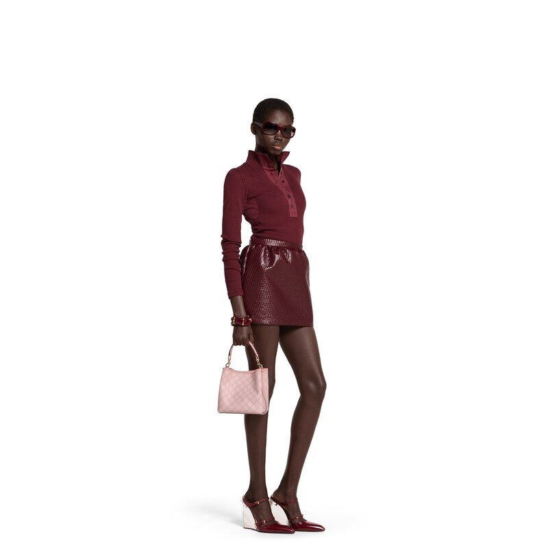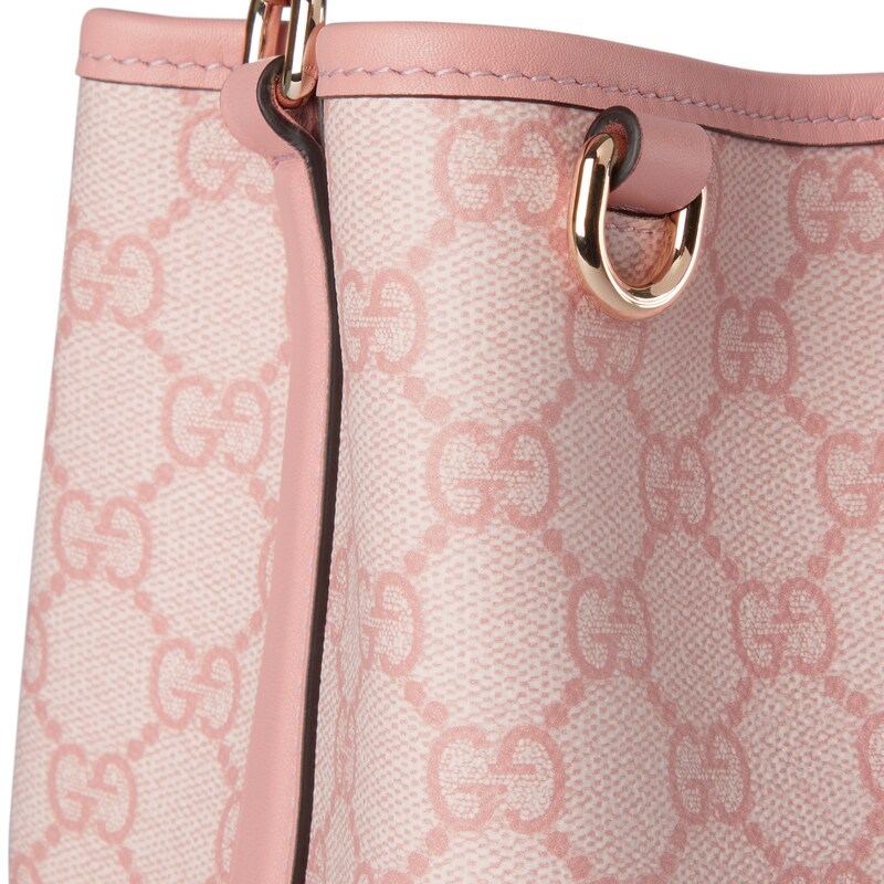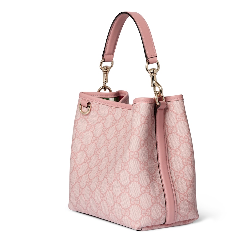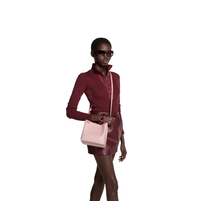 GG Emblem系列焕新诠释品牌的隽永优雅风范和精湛工艺。这款迷你水桶包以浅粉色匠心呈现,配以织带棉质衬里,设有一个内部隔层,精致而不失实用性。