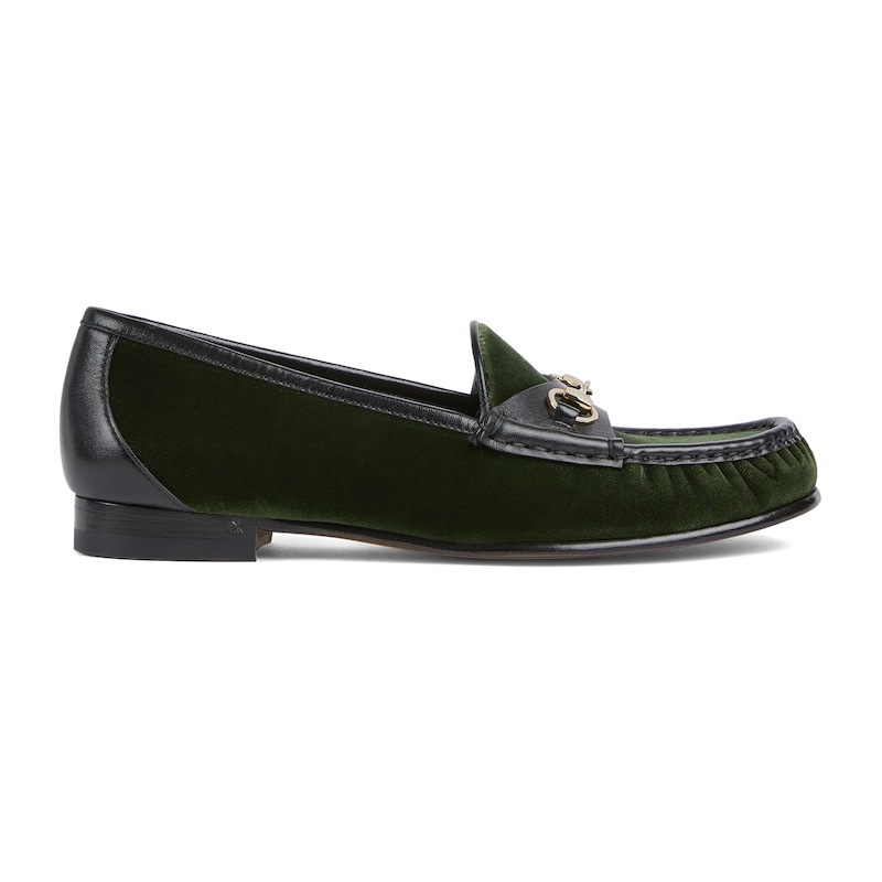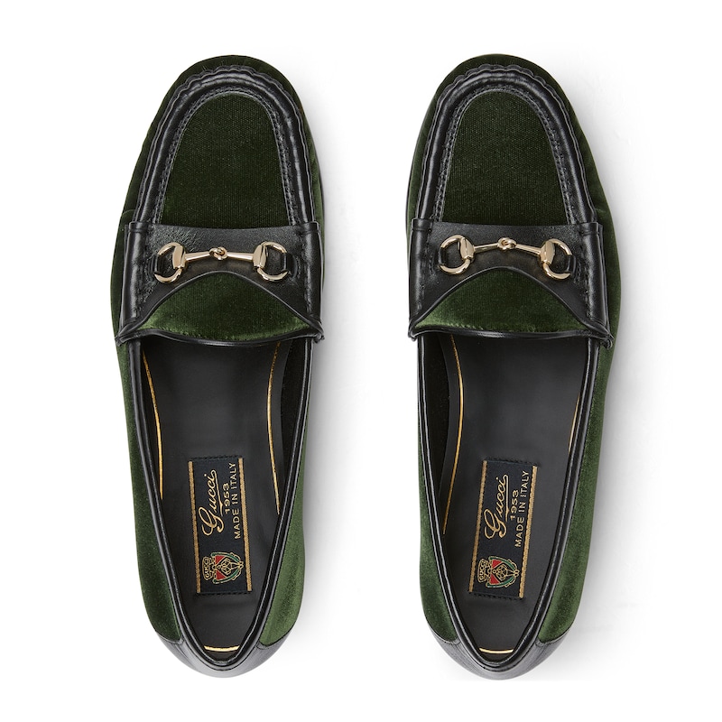 这款Gucci乐福鞋以优质天鹅绒匠心打造,为品牌经典鞋款再添亮眼力作。圆润造型与金色调马衔扣配件在此浪漫邂逅,让人不禁感怀Gucci悠久的设计传承。