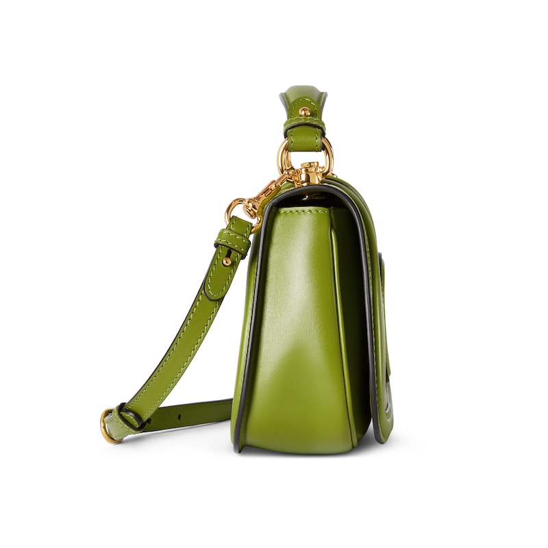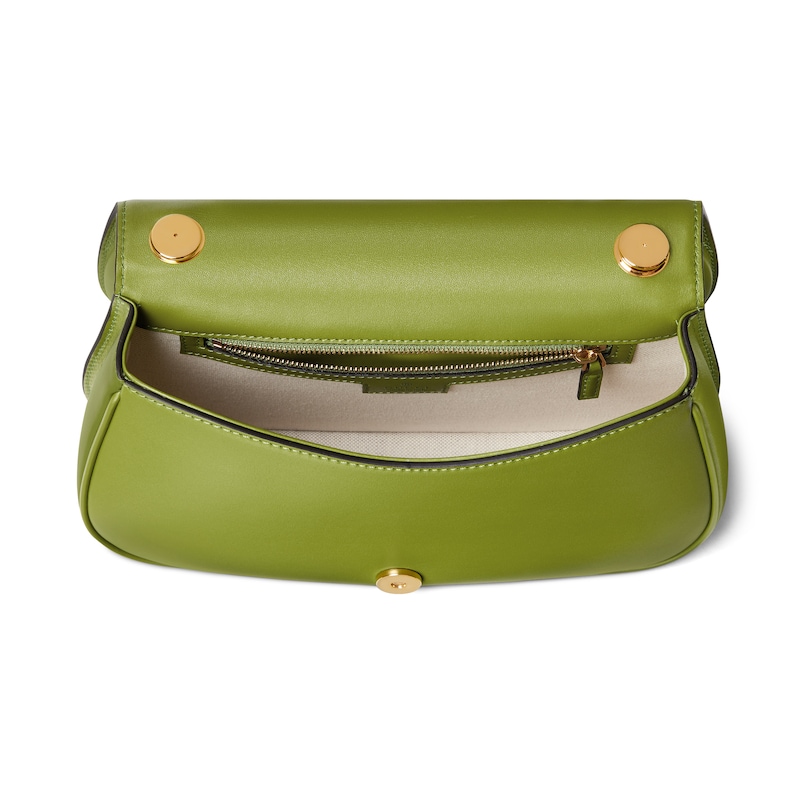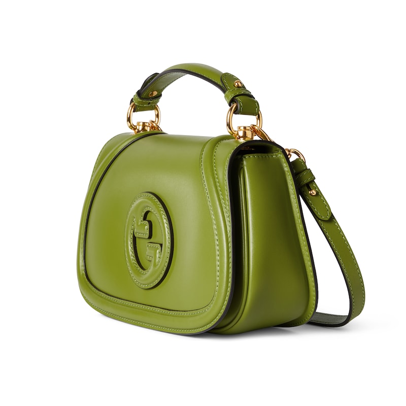 Gucci Blondie系列全新手袋饰有在20世纪70年代初期首次亮相的品牌系列经典标识,巧妙结合传承魅力与当代风尚,出色诠释品牌经典设计与现代精髓。这款中号手提包甄选绿色光面皮革打造,配有一跟可拆卸可调节皮革肩带。