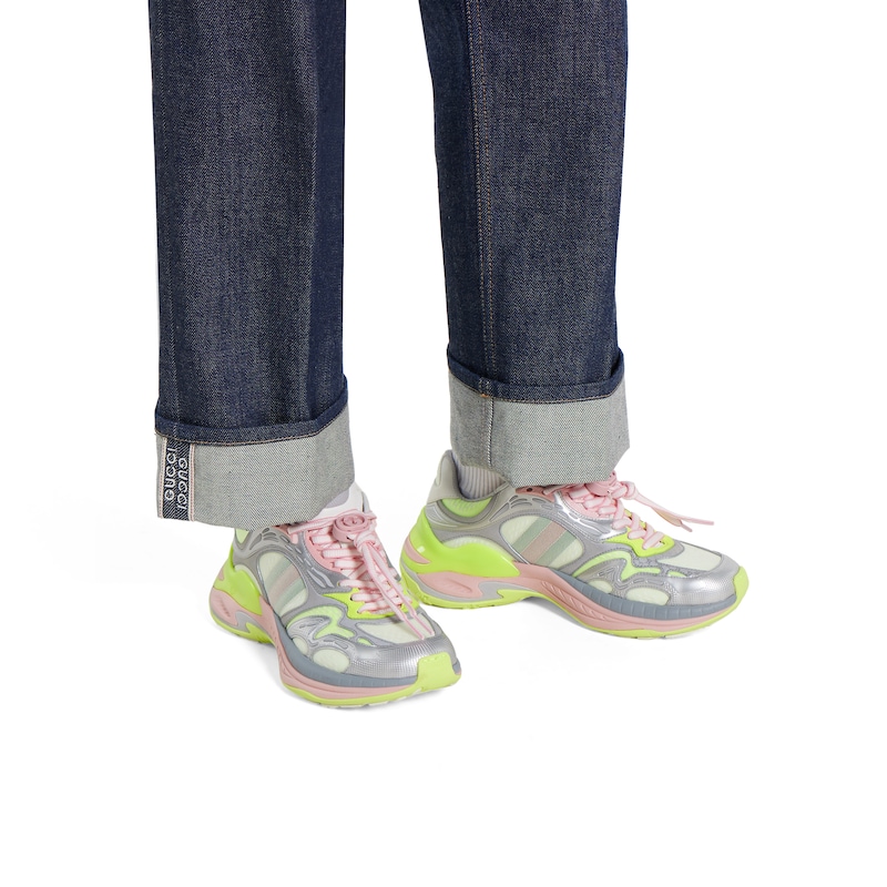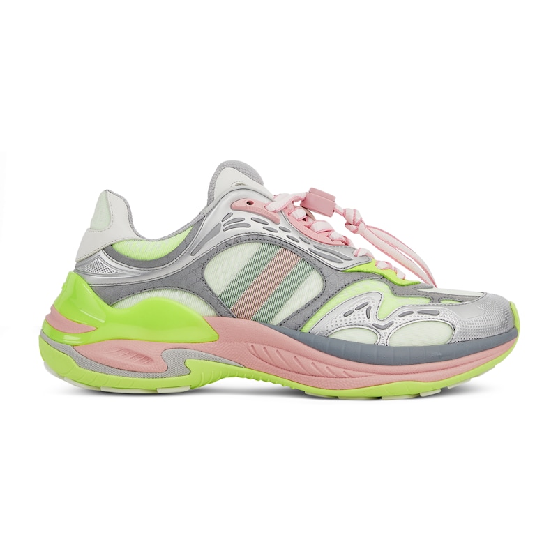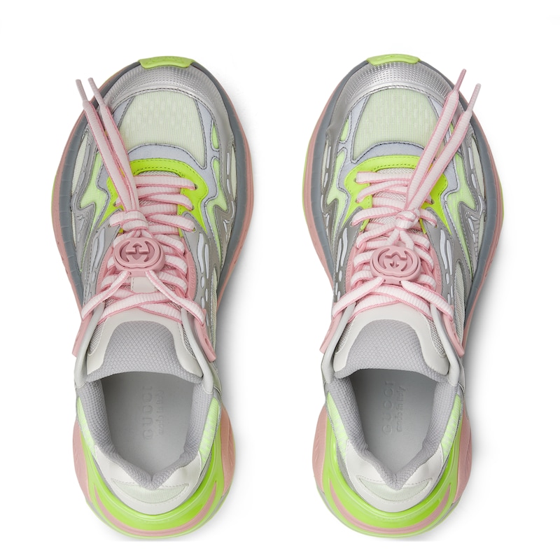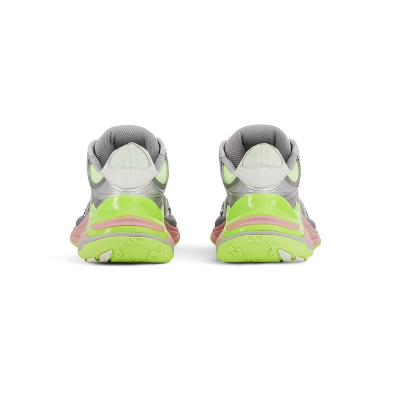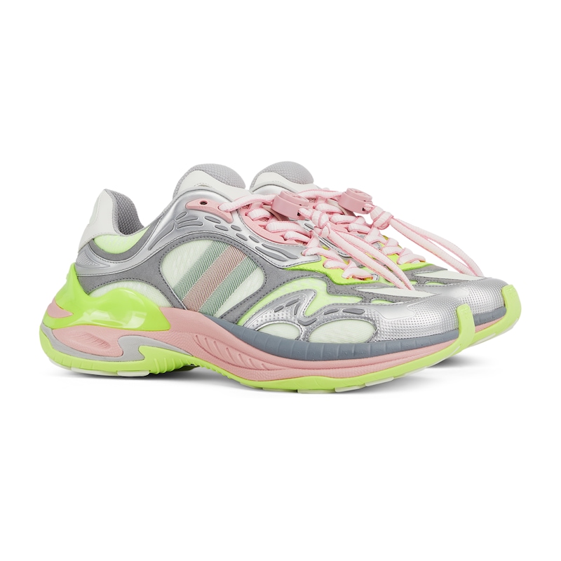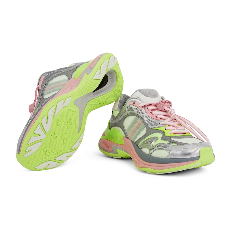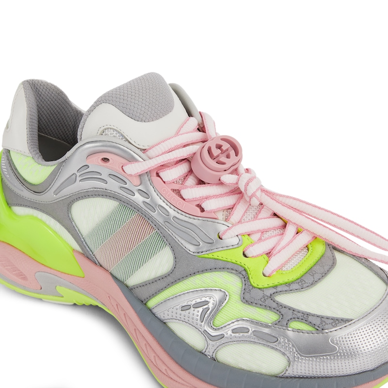 这款全新运动鞋呈现精致设计,于运动风范中绽现奢华美韵。融合网眼布和皮革材质,缀饰别致的互扣式双G鞋带,流露品牌标志性魅力。EVA橡胶鞋底压印GG标识,脚感舒适且经久耐用,GG反光滚边更添一抹现代气息。