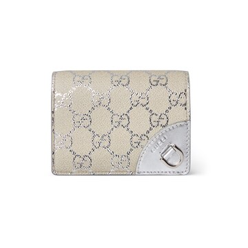 GG Emblem系列焕新演绎品牌经久不息的优雅风范与精湛工艺,引入的金属质感材质为标志性GG图案汇入新鲜血液。这款钱包以层压效果GG字母交织图案涂层织物打造,为整个包袋汇入耀目光彩。