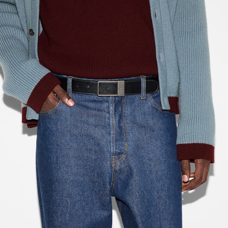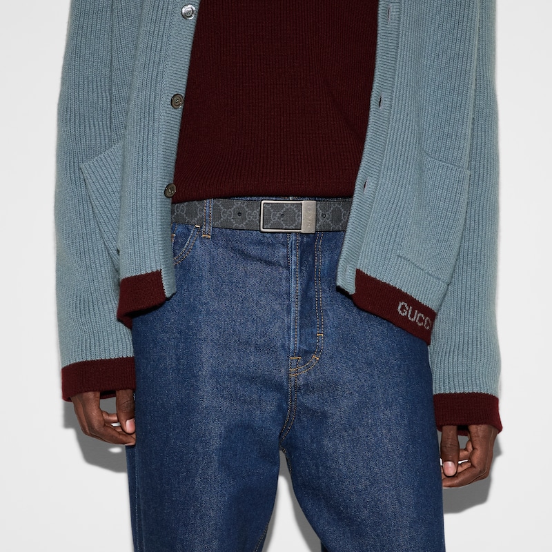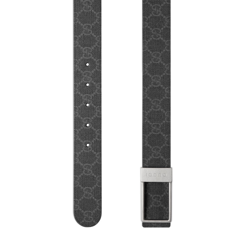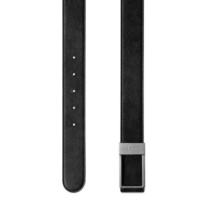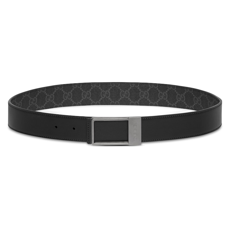 标志性GG图案继续为牛皮革配饰增色添彩,以现代风范演绎昔日经典。这款双面腰带一面采用黑色GG Supreme帆布,一面采用黑色牛皮革材质,为经典设计注入多变格调。饰Gucci刻花长方形搭扣为这款配饰锦上添花。