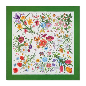 隆重推出2026春夏系列。La Famiglia系列中,桑蚕丝和柔软配饰设计继续通过创意视角重新诠释品牌标志性元素。这款多功能方巾以桑蚕丝斜纹面料匠心打造,饰有全方位Gucci Flora印花。