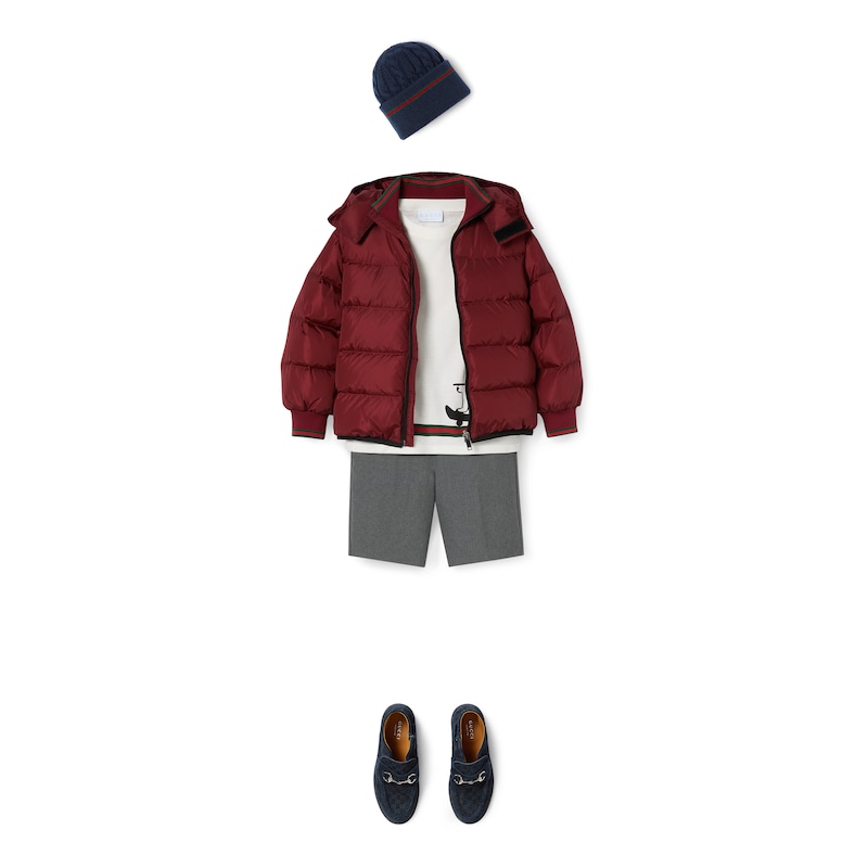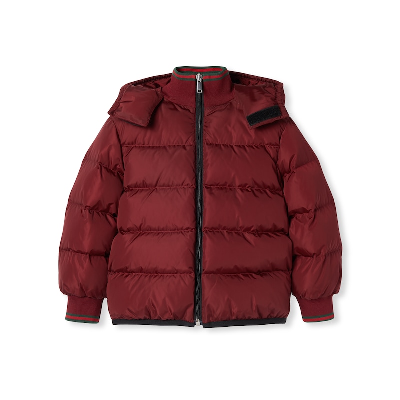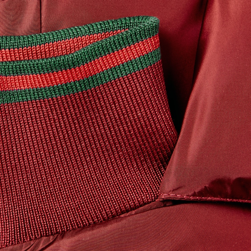 全新儿童系列单品以多变风格焕新演绎典藏条纹织带。成衣、鞋履和配饰缀饰绿色和红色滚边,演绎适合每次探险的运动风尚。这款儿童夹克以加衬尼龙匠心打造,巧妙融入织带滚边。