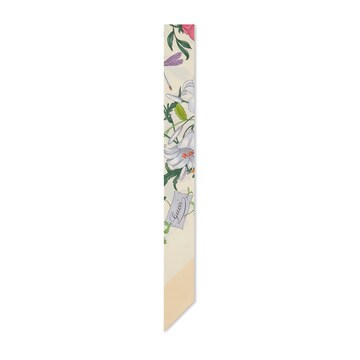 品牌桑蚕丝配饰系列秉承经典,以华贵材质、精湛工艺与清新色调焕新演绎GG、织带、Flora花卉、竹节、马衔扣及马术元素等品牌经典图案。这款丝巾甄选斜纹桑蚕丝打造,缀饰通体Gucci花卉印花。