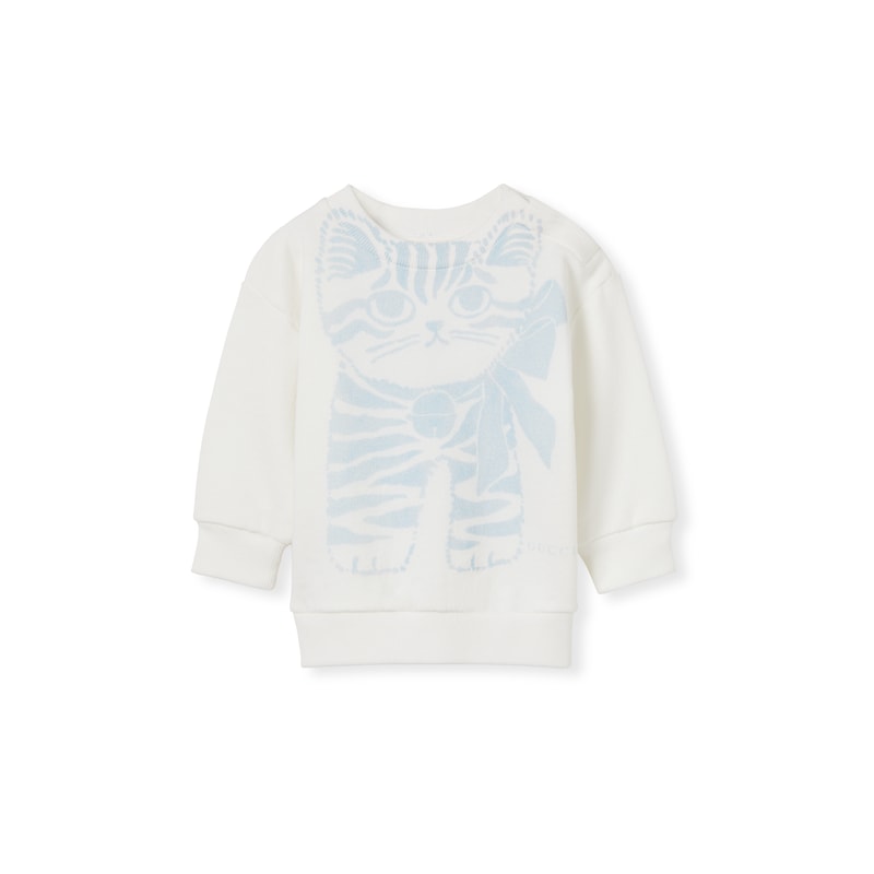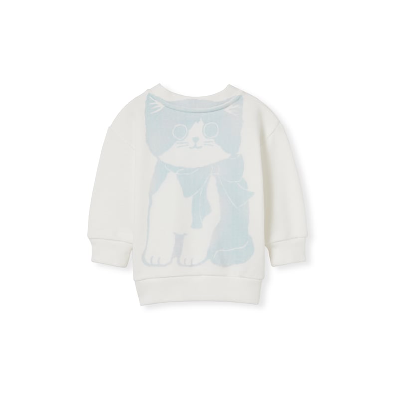 画家Naon Jeong从日常生活和本土文化中汲取灵感,创作出趣意十足且充满怀旧气息的设计。她将猫咪印花和其他趣味图案与品牌名称糅为一体,为2025早秋儿童系列添姿增彩。这款婴儿卫衣以针织棉匠心打造,缀饰猫咪印花,尽显别致。