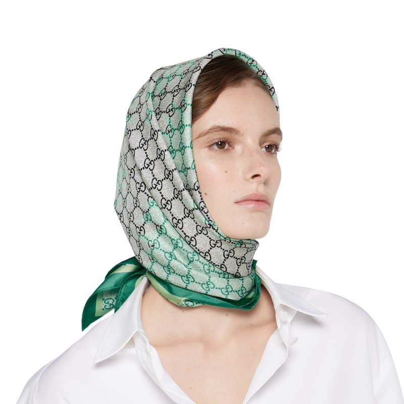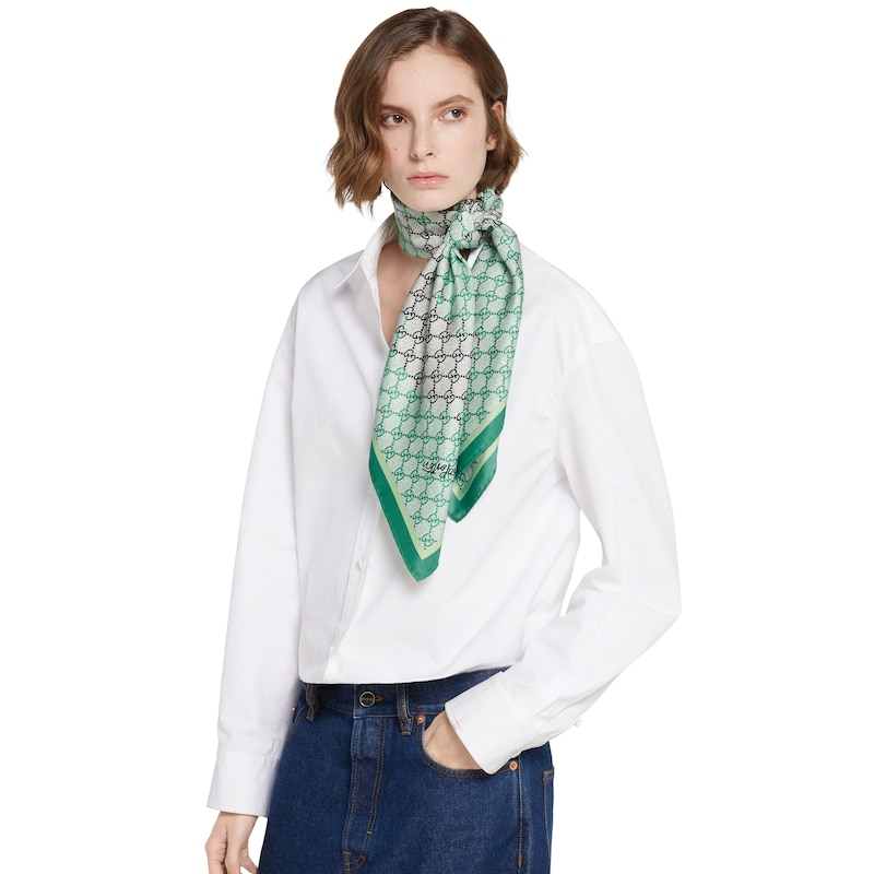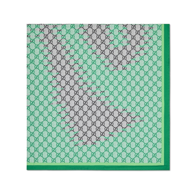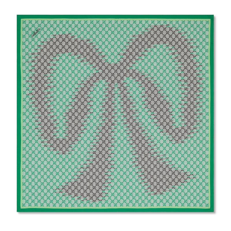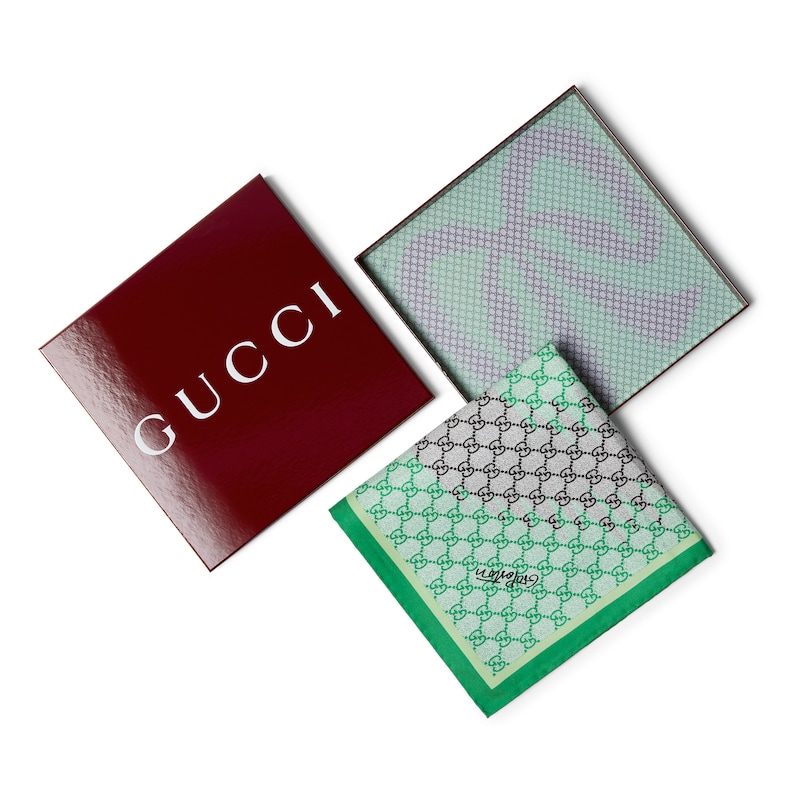 插画家Gio Pastori革新演绎Gucci经典GG图案,为90 x 90版方巾系列再添新作。他因剪纸技艺被大众熟知,所创作的作品具有强烈的视觉冲击力。