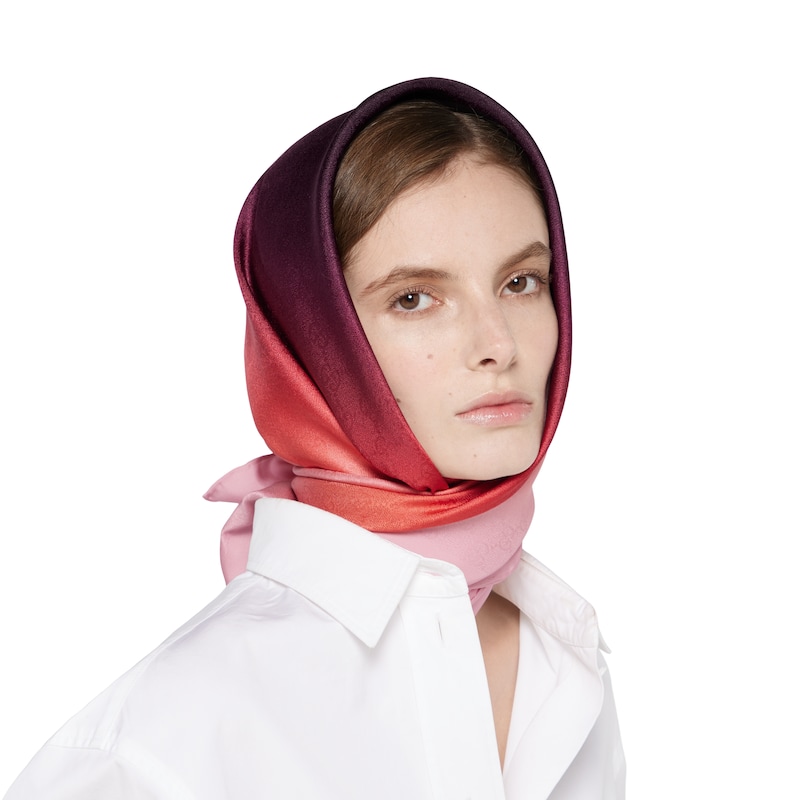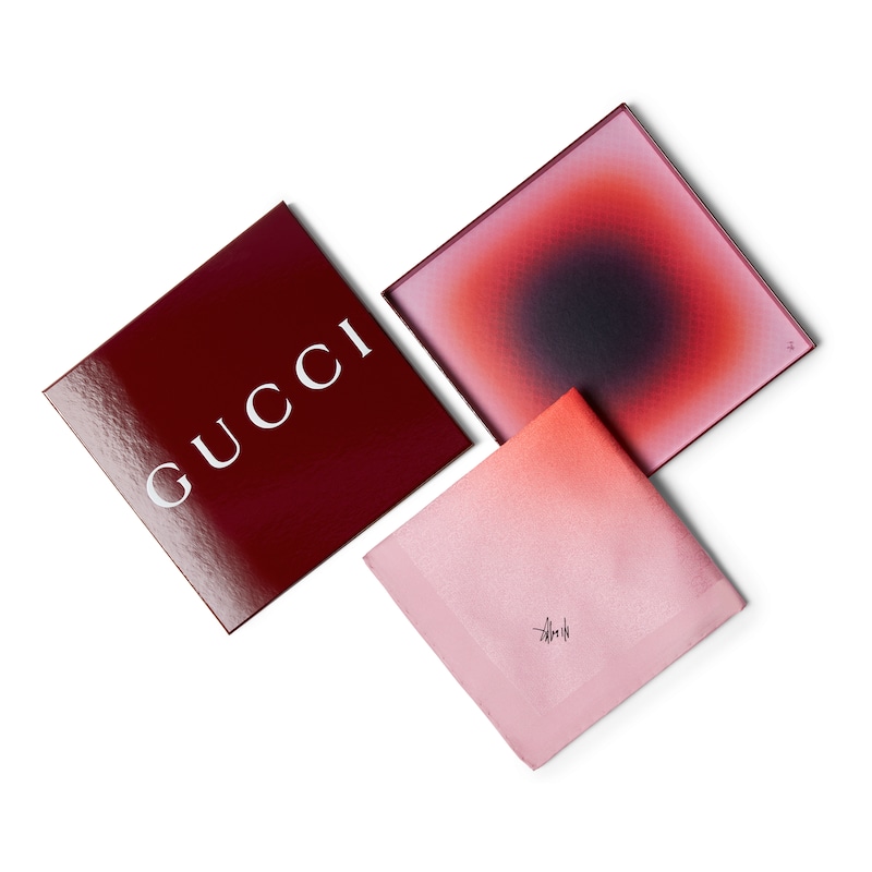 艺术家Jonny Niesche运用抽象手法焕新演绎Gucci经典GG图案,为90 x 90版方巾系列再添新作。他创作的作品以鲜艳明快的配色和入坠幻境的设计见长,给人以仿若身临其境的美妙感受。