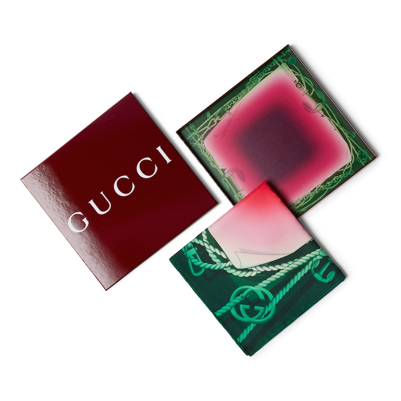 艺术家Jonny Niesche运用抽象手法焕新演绎Gucci航海风格图案,为90 x 90版方巾系列再添新作。他创作的作品以鲜艳明快的配色和入坠幻境的设计见长,给人以仿若身临其境的美妙感受。