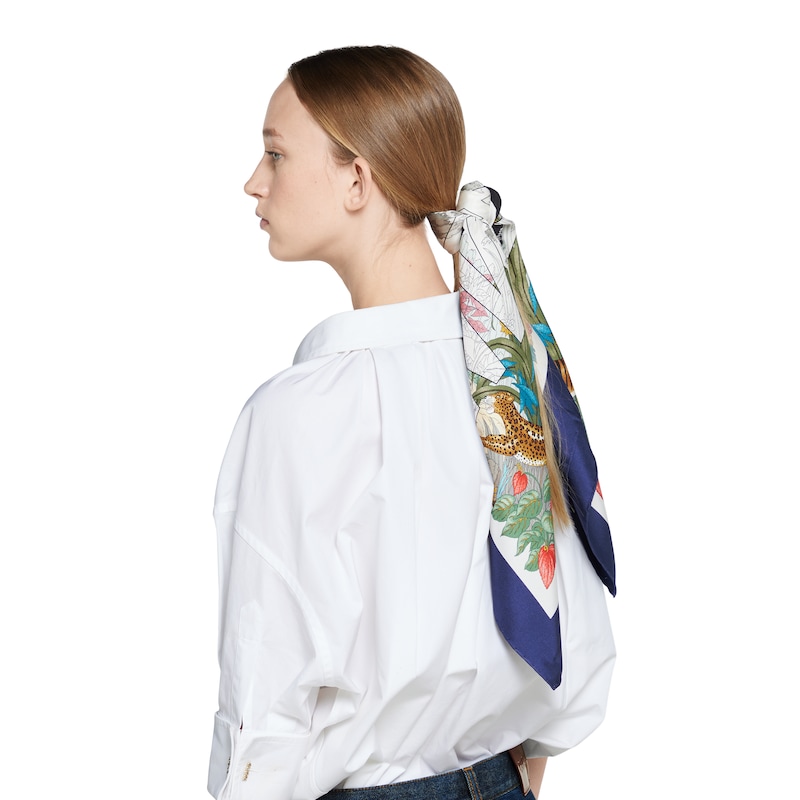 艺术家Sara Leghissa革新演绎Gucci自然风情图案,为90 x 90版方巾系列再添新作。她的作品以质疑并加深与现实世界的联系著称。