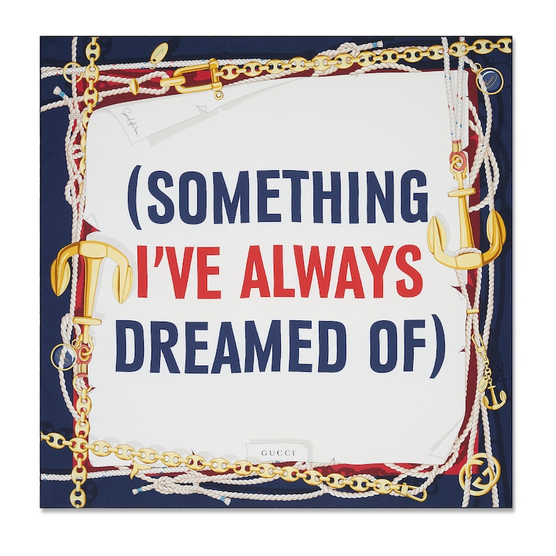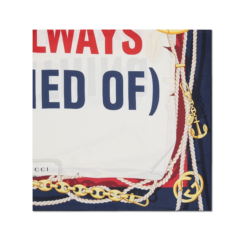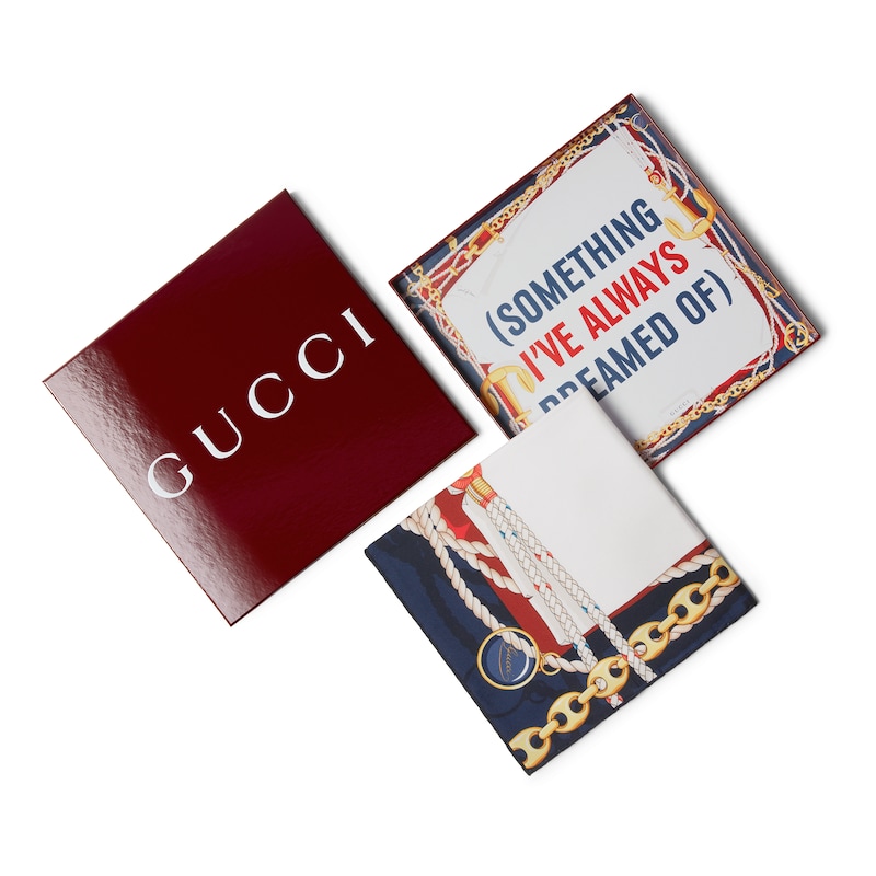 艺术家Sara Leghissa革新演绎Gucci航海风格图案,为90 x 90版方巾系列再添新作。她的作品以质疑并加深与现实世界的联系著称。