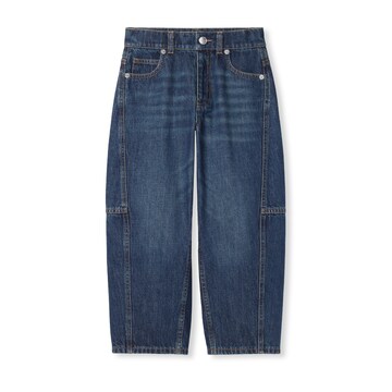 2025早秋儿童系列倾情呈现经典标识细节等一系列备受喜爱的图案。这款儿童牛仔裤巧妙点缀Gucci金属纽扣与Gucci压花皮革标签,尽显设计巧思。