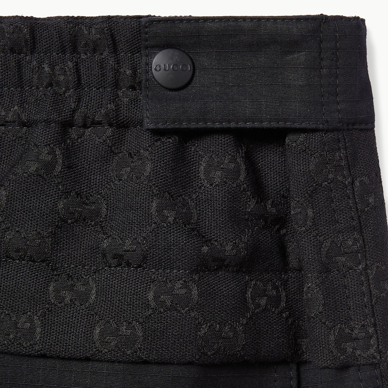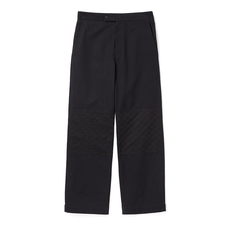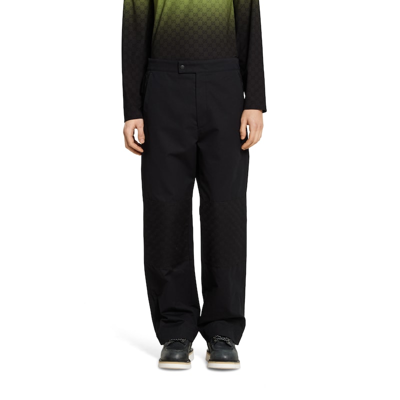 质地柔软且富有质感的面料为冬日衣橱单品添注别致魅力,适合城市漫步或徒步登高时穿着。这款长裤以黑色棉质格子布打造,巧妙融入GG帆布镶饰,令整个设计魅力更添。
