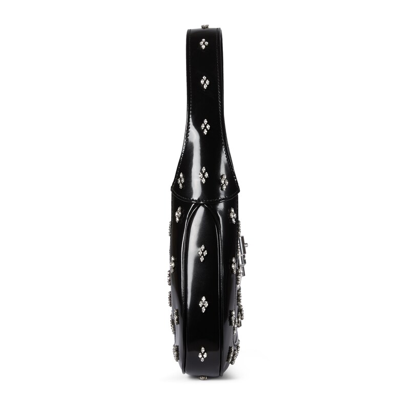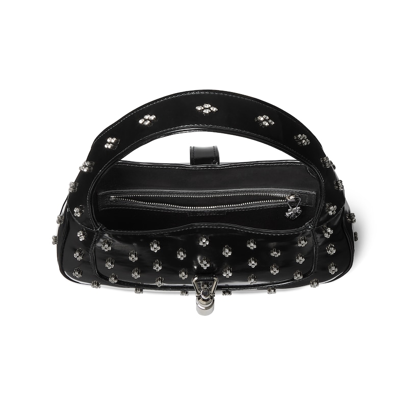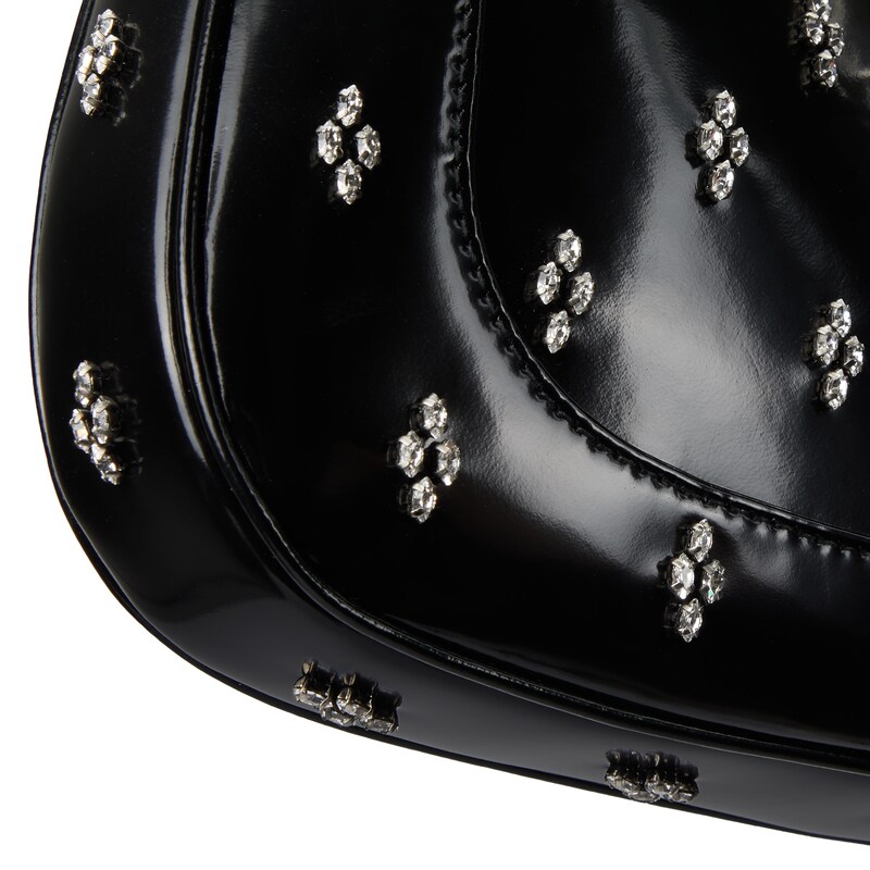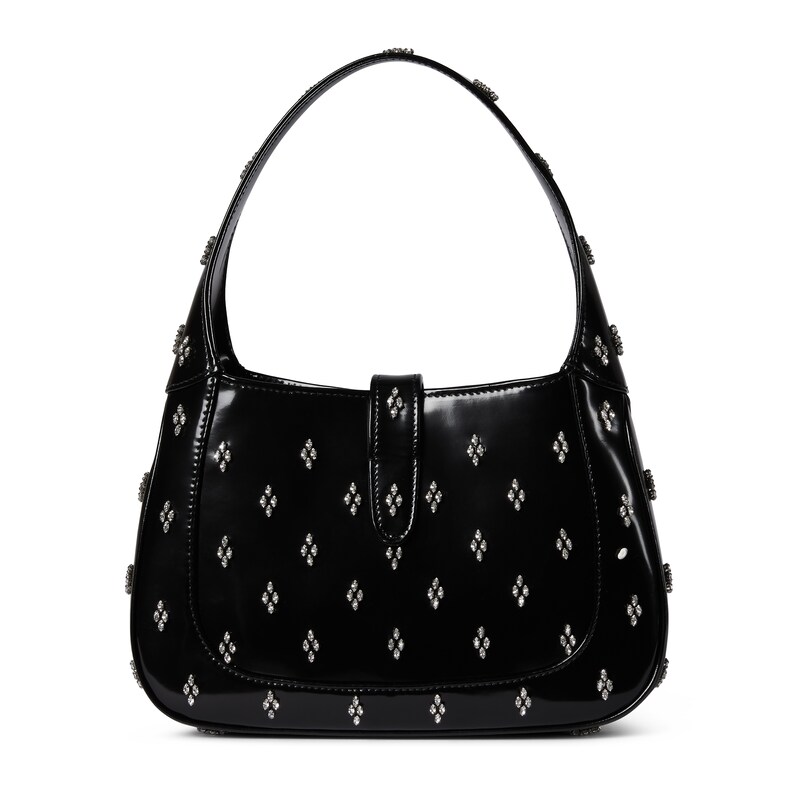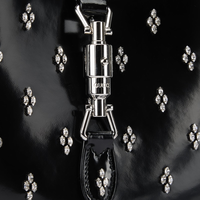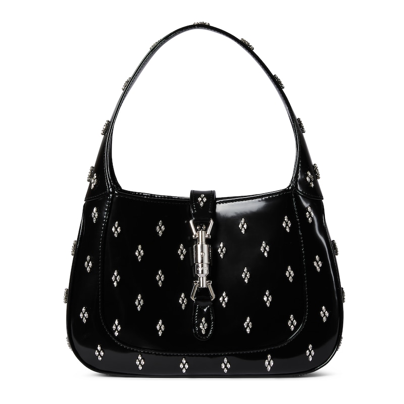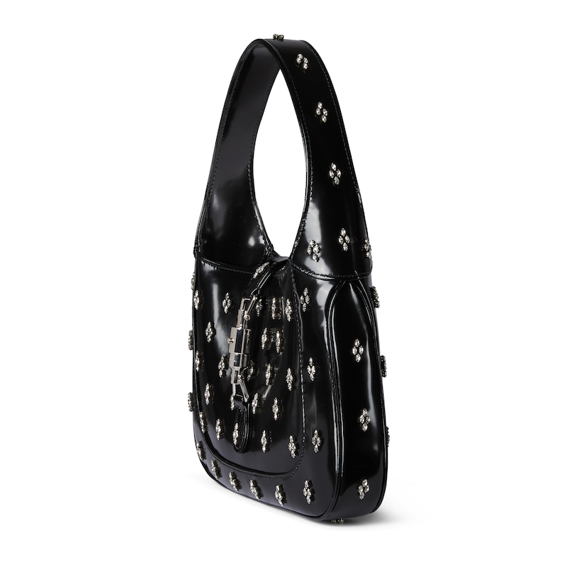 这款Gucci Jackie 1961系列中号肩背包以黑色光泽感抛光皮革打造,匠心缀饰几何风格水晶刺绣,为2025春夏系列再添耀目力作。