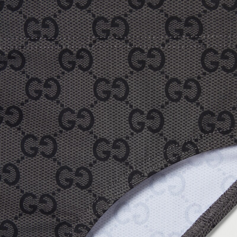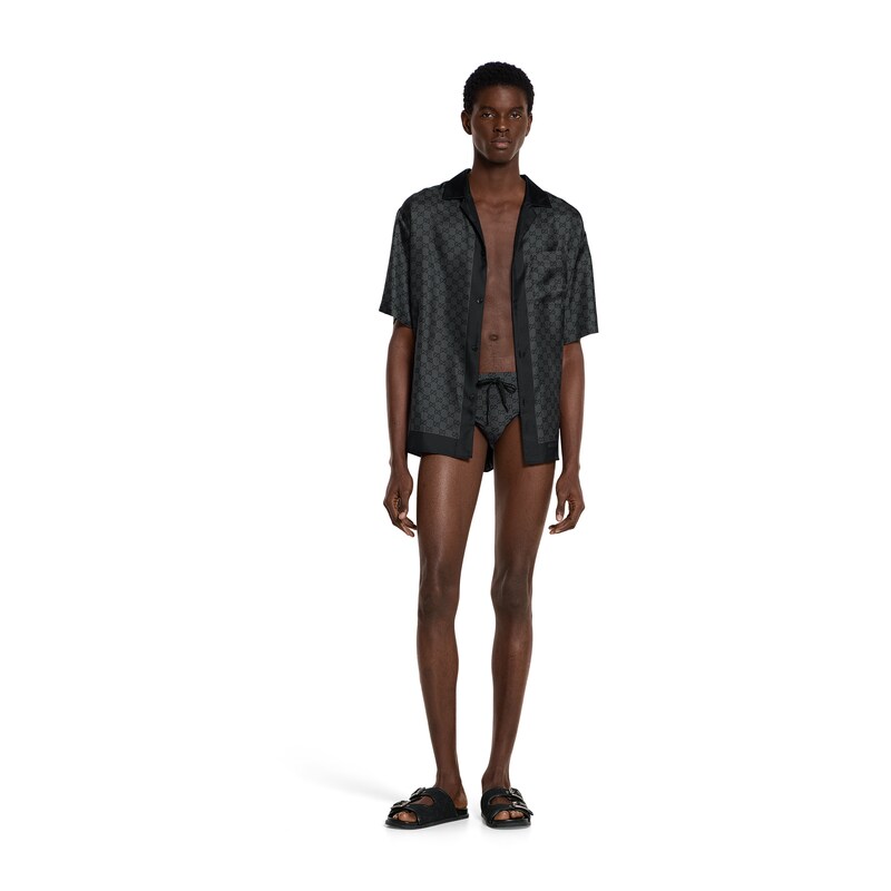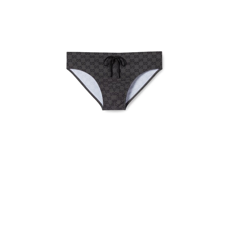 2025早秋系列以现代手法焕新演绎品牌标志性元素和精致图案。这款三角泳裤以黑色GG弹性纤维匠心打造。