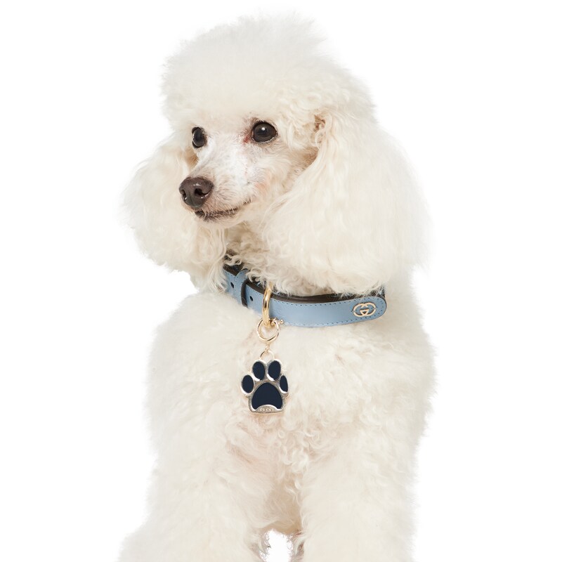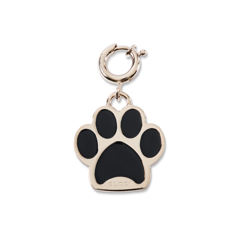 品牌宠物配饰系列将日常小物件与别样趣致元素巧妙融为一体。2025早秋爪子造型和心形坠饰匠心融蕴彩色珐琅细节,可为您的宠物度身打造个性化单品。这款爪子造型坠饰以珐琅和黄铜打造,缀饰Gucci和GG刻花细节。
