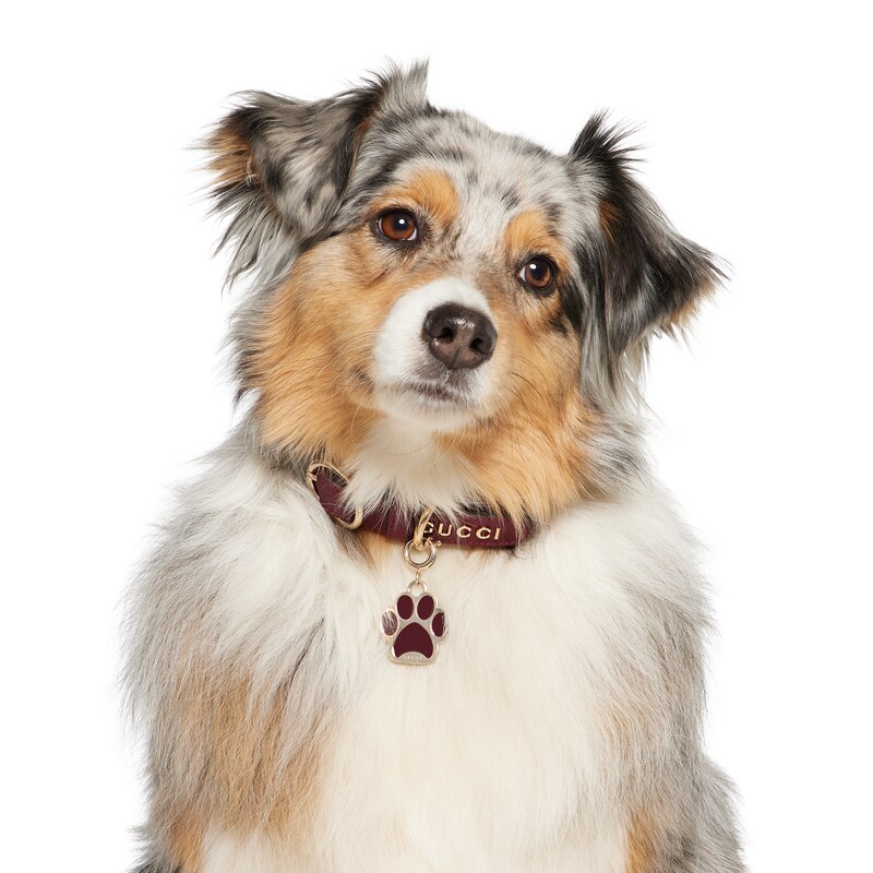 品牌宠物配饰系列将日常小物件与别样趣致元素巧妙融为一体。2025早秋爪子造型和心形坠饰匠心融蕴彩色珐琅细节,可为您的宠物度身打造个性化单品。这款爪子造型坠饰以珐琅和黄铜打造,缀饰Gucci和GG刻花细节。