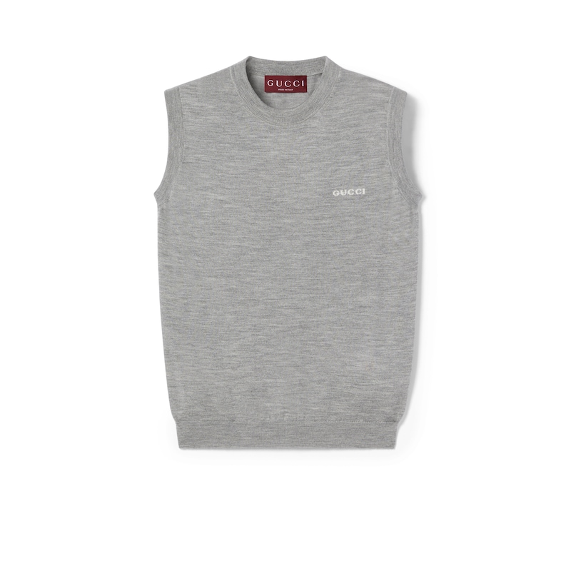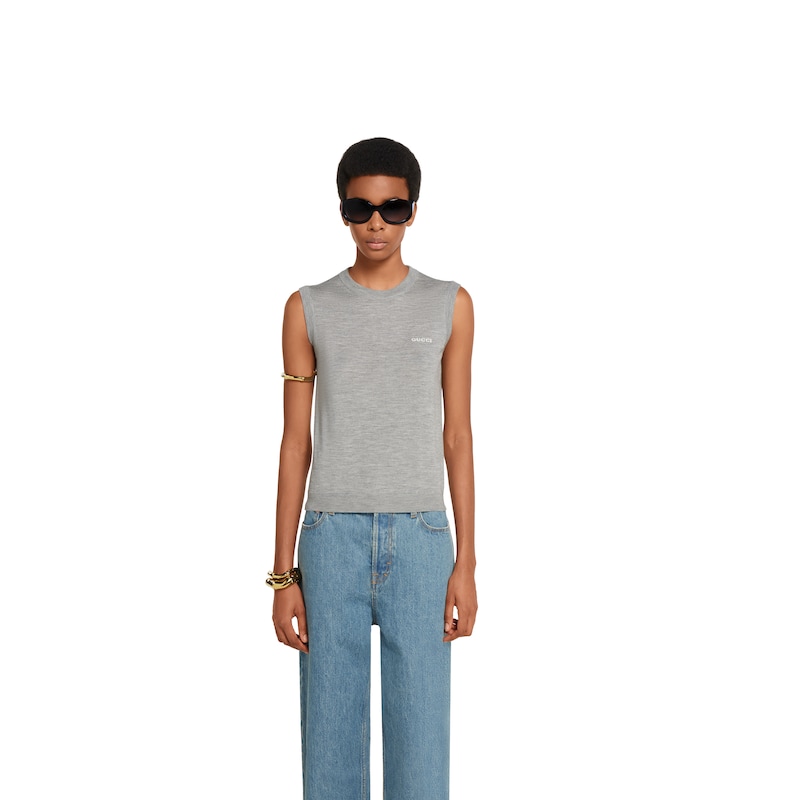 2025春夏系列推出多款休闲华丽风精致针织服饰,这款圆领无袖上衣便是其中之一。