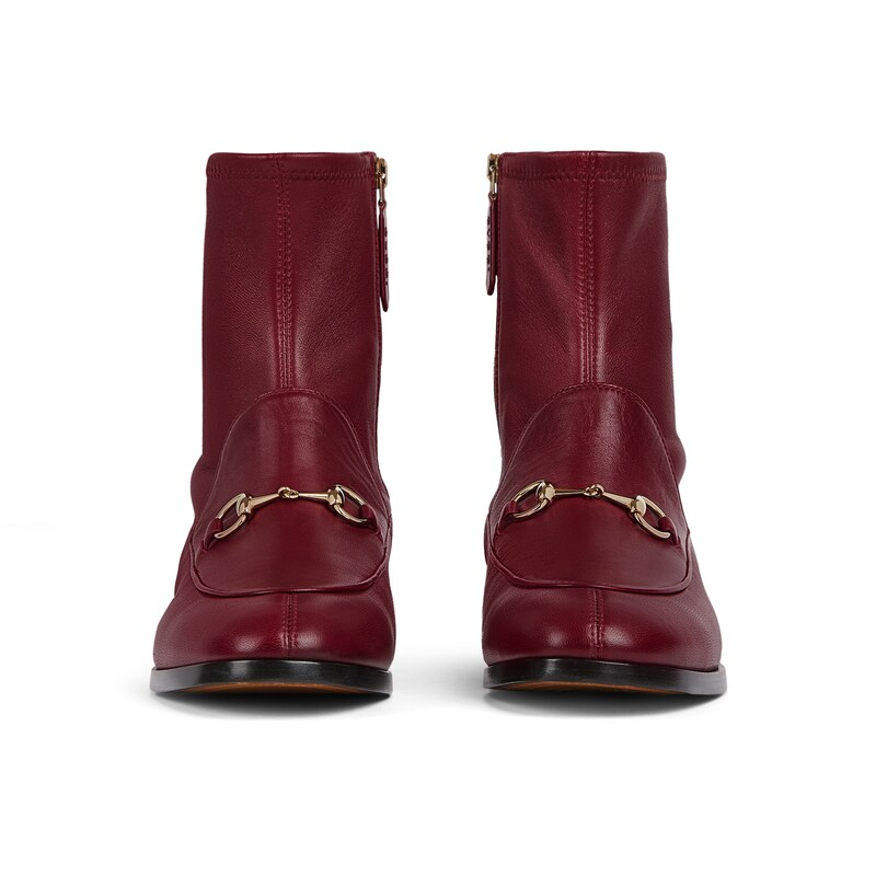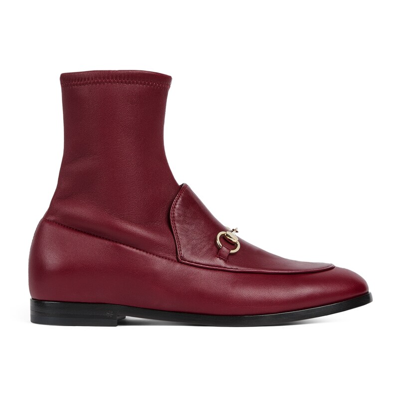 Gucci Jordaan系列乐福鞋是贯穿四季的经典单品。这款踝靴焕新演绎经典廓形,选用光面皮革,搭配浅金色调马衔扣,彰显别致魅力。