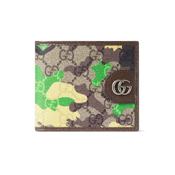 生动迷彩结合别致配色,焕新演绎经典GG图案。这款双折钱包以大理石纹GG字母图案涂层织物打造,匠心融蕴双G细节。