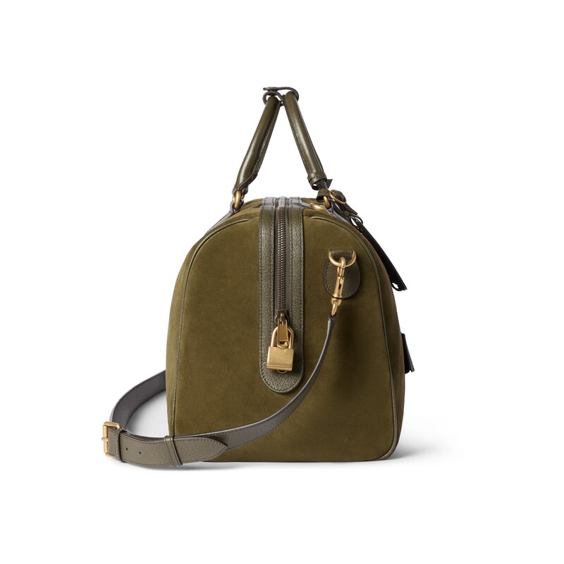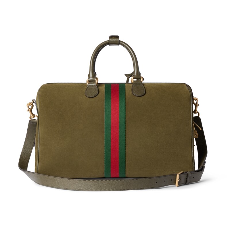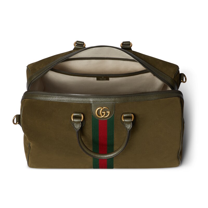 Gucci Savoy系列巧妙结合绒面材质与皮革滚边,为2025秋冬系列缔就纹理感与层次感兼备的新意单品。这款旅行包缀饰品牌标志性织带与双G细节,甄选精致面料呈现经典优雅款型。
