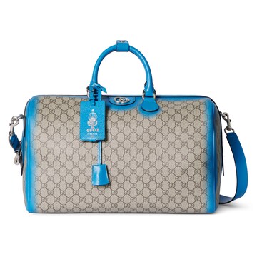 巧妙喷绘效果结合别致配色,以充盈的视觉张力焕新演绎经典GG图案。这款旅行包以GG字母图案涂层织物打造,采用撞色喷绘效果匠心呈现包身轮廓。