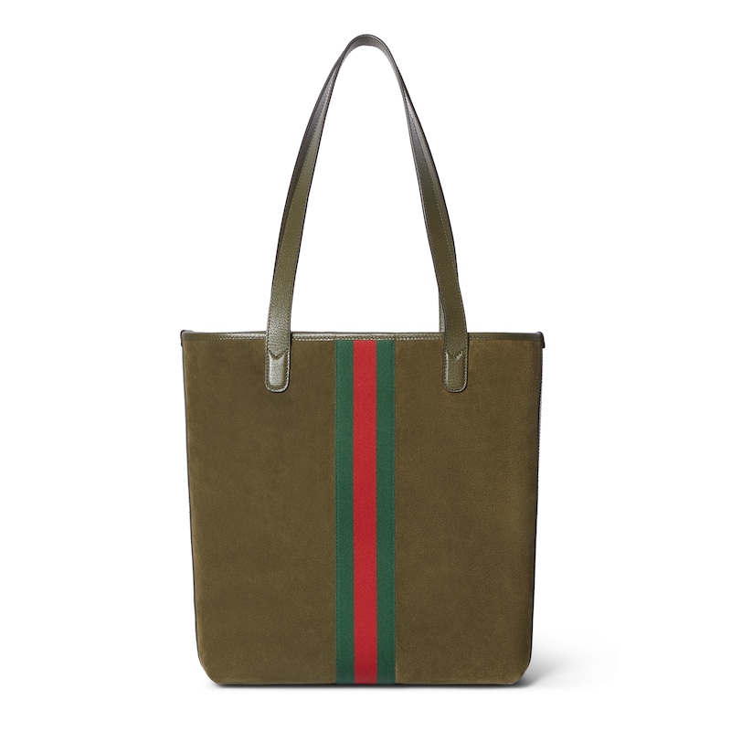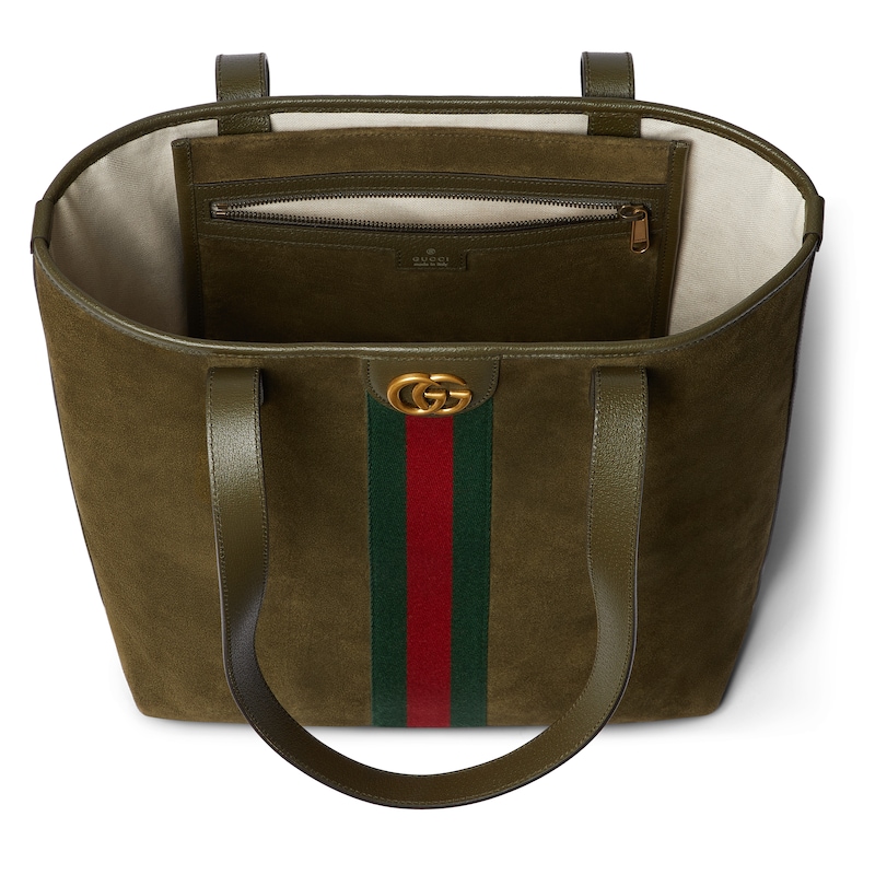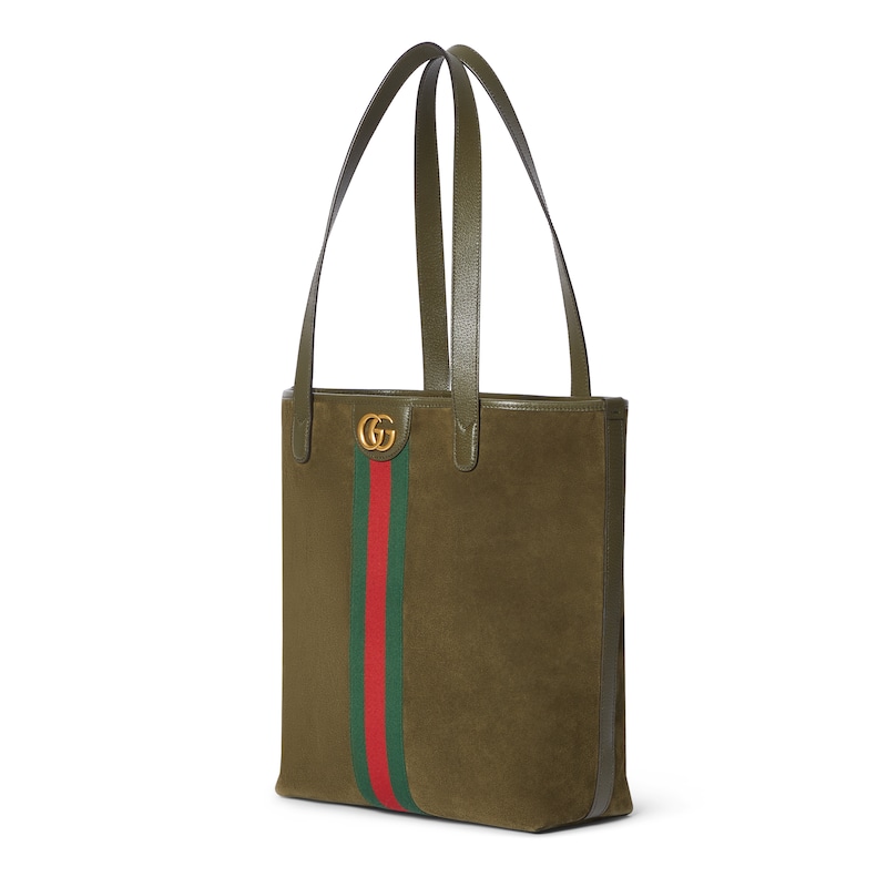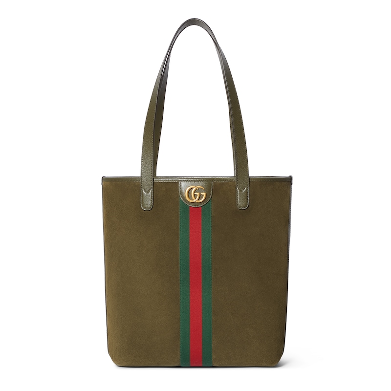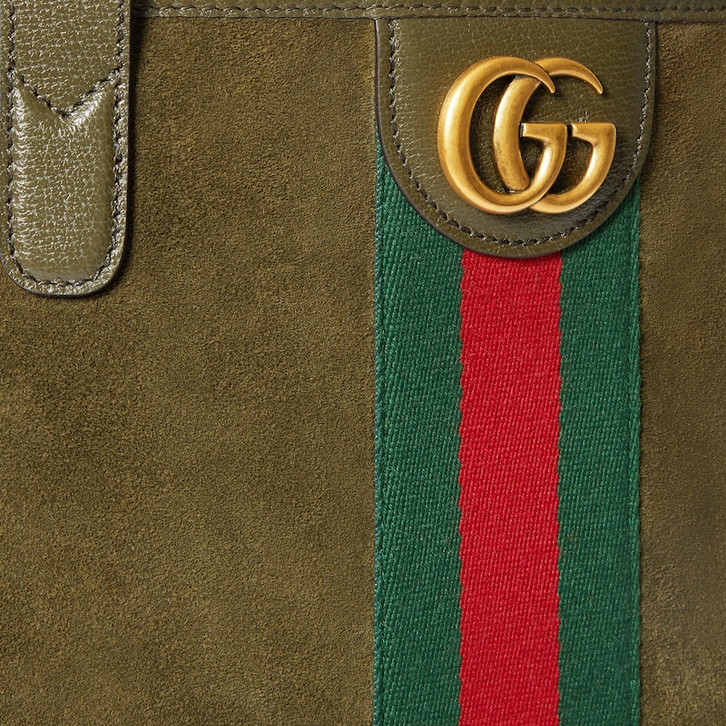 Ophidia系列匠心融蕴条纹织带和金色调双G标识,为2025秋冬季系列再添新作。这款中号托特包以轻质柔软绒面材质打造,缀饰红绿织带细节,彰显品牌内涵。