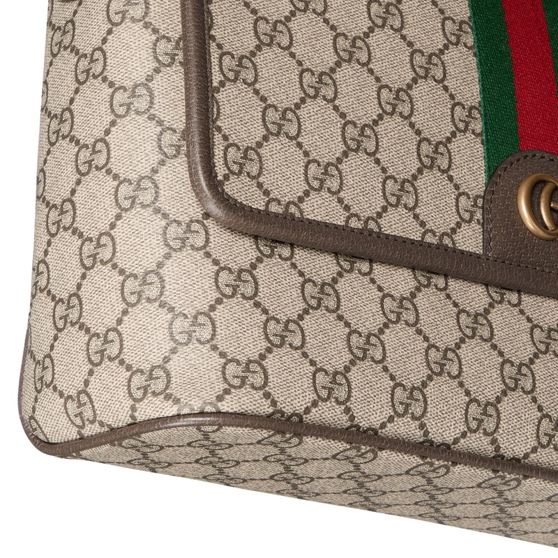 Ophidia系列匠心融蕴米色和深棕色两大配色,搭配经典廓形与全新功能,甄选触感柔软的织物打造。这款邮差包以GG字母交织图案涂层织物打造,匠心缀饰双G标识和织带细节。