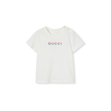 从精致刺绣到通体印花,2025早秋儿童系列不断焕新演绎品牌经典图案。这款婴儿T恤选用针织棉布匠心制成,Gucci刺绣细节以品牌标志性织带同款配色呈现。