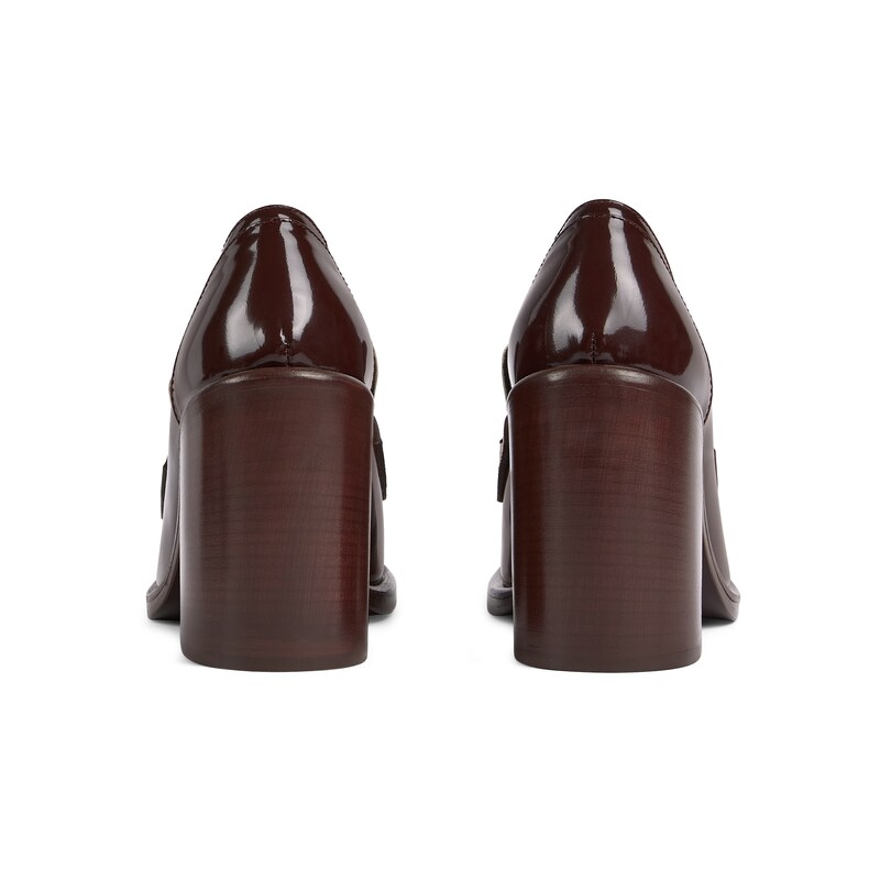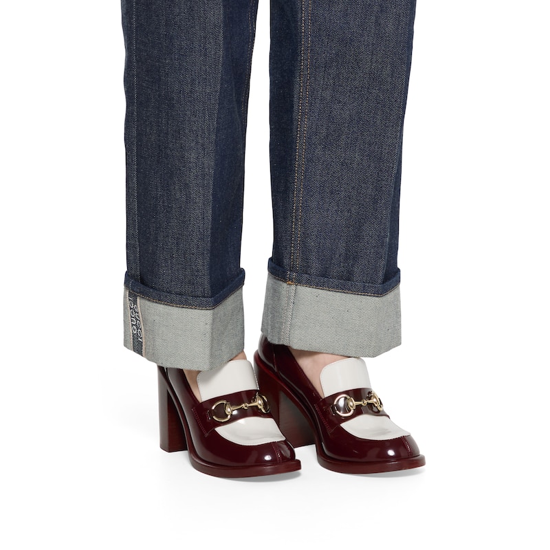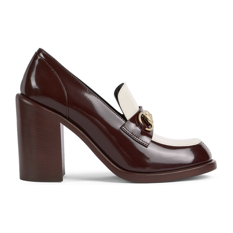 这款女士中跟乐福鞋采用光滑亮面漆皮精心打造,缀饰浅金色调马衔扣配件,致敬品牌马术传承。