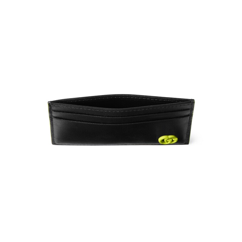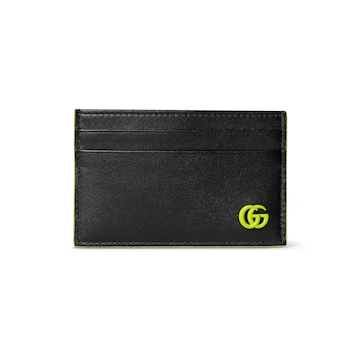 GG Marmont系列以缤纷彩色细节为吸睛亮点,新颖功能为经典廓形添注活力。这款卡片夹采用半亮面软皮制作,与翠绿色皮革滚边和翠绿色漆面双G细节相得益彰。