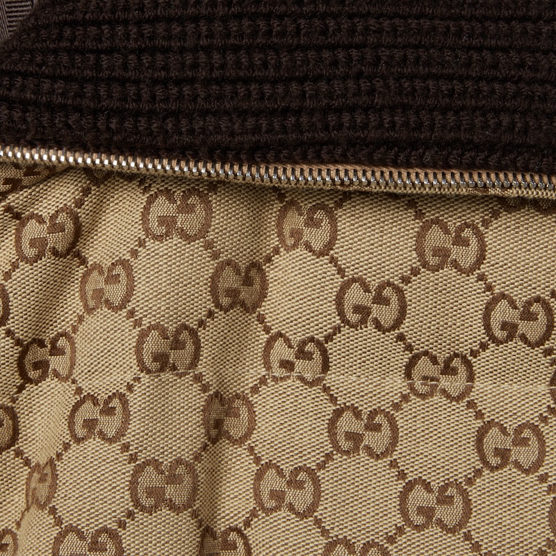 品牌典藏图案与休闲丹宁面料、轻质帆布和精致绒面材质等纹理精美的面料交相辉映,令系列熠熠生辉。这款夹克选用GG帆布精制而成,配以针织滚边和松紧抽绳腰头,尽释别致韵调。