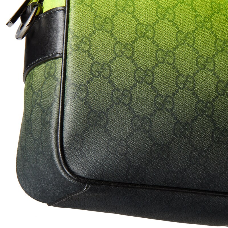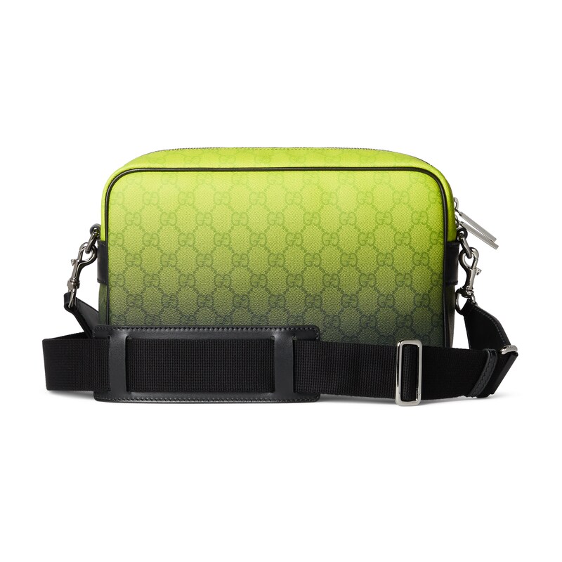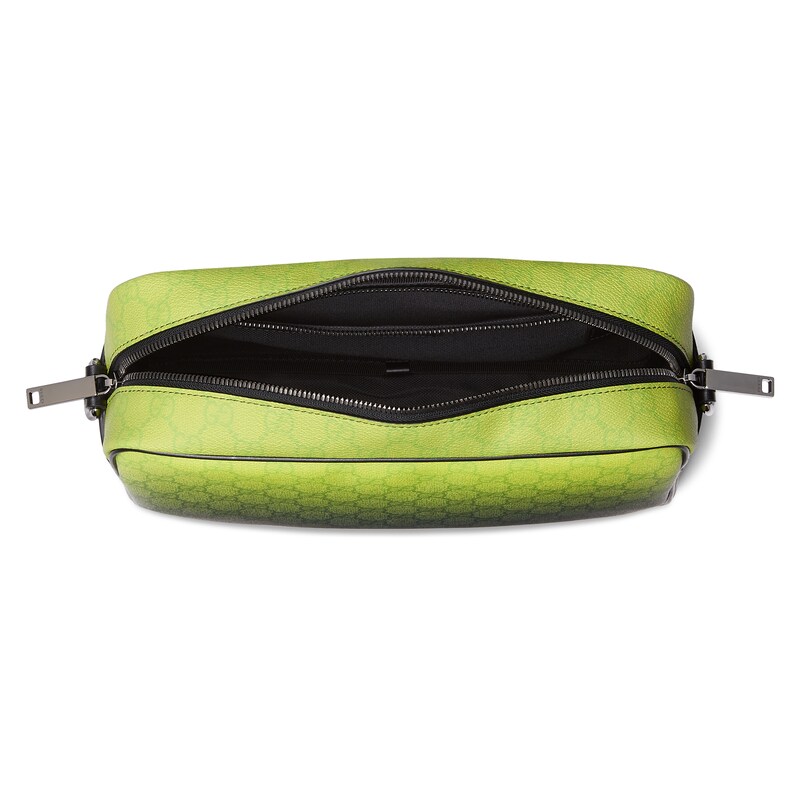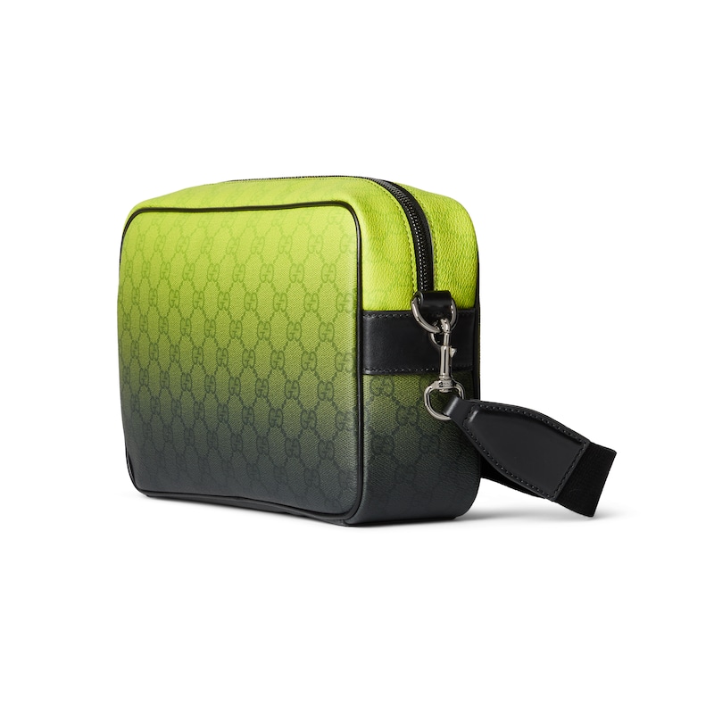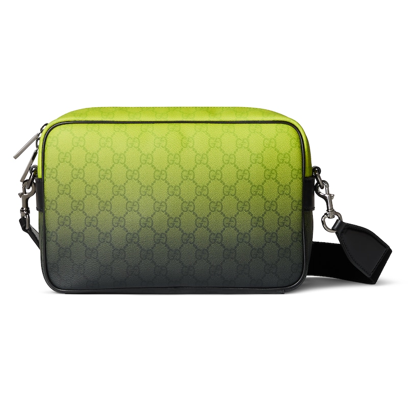 别开生面的绿色调渐变效果印花为这款基础功能单品倍添时尚美感。这款中号斜挎包选用GG字母交织图案涂层织物匠心打造,通体渐变印花尽释出色品味。