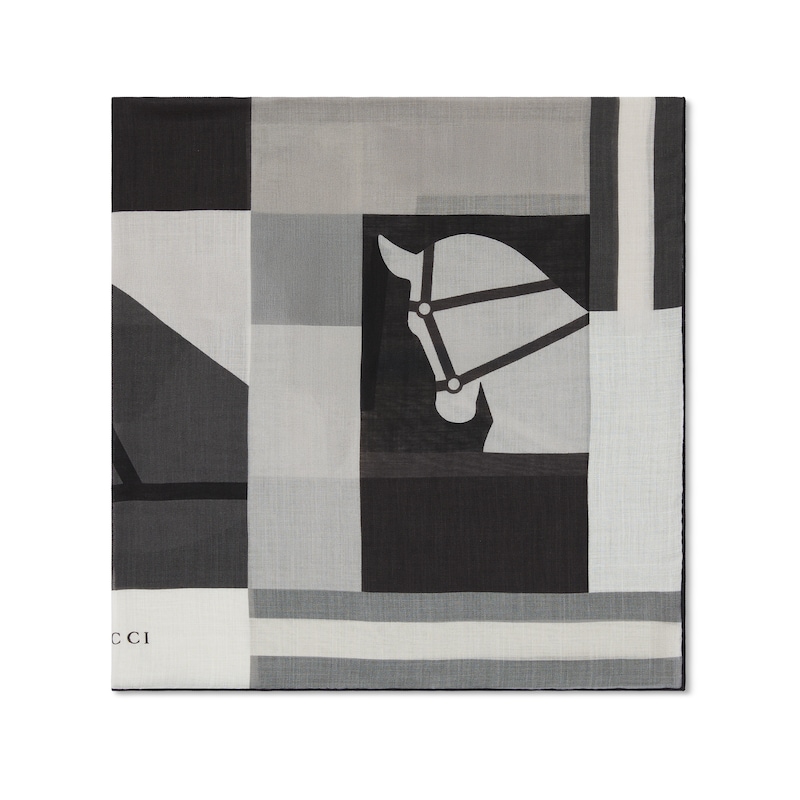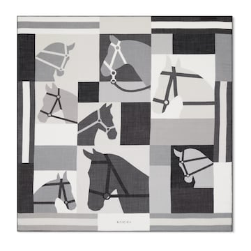 马衔扣细节与骑马图案以精致色调匠心呈献,向品牌与马术世界的深厚渊源致敬。这款披肩以质地柔软的山羊绒打造,匠心缀饰通体马术图案。