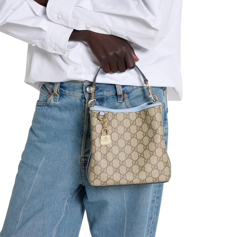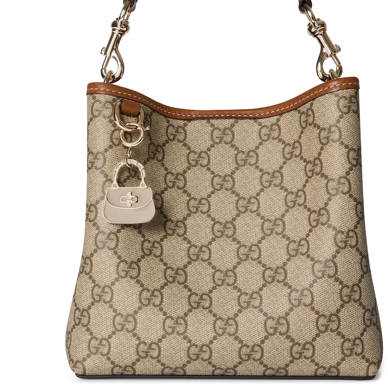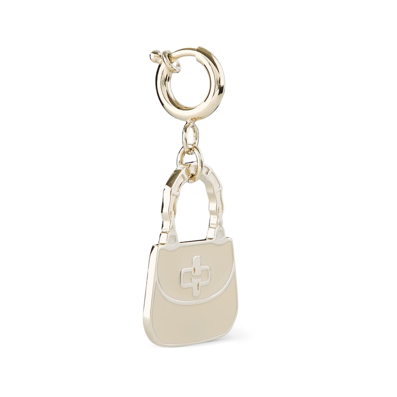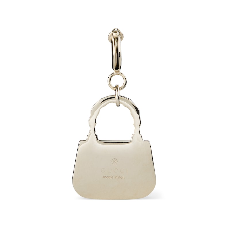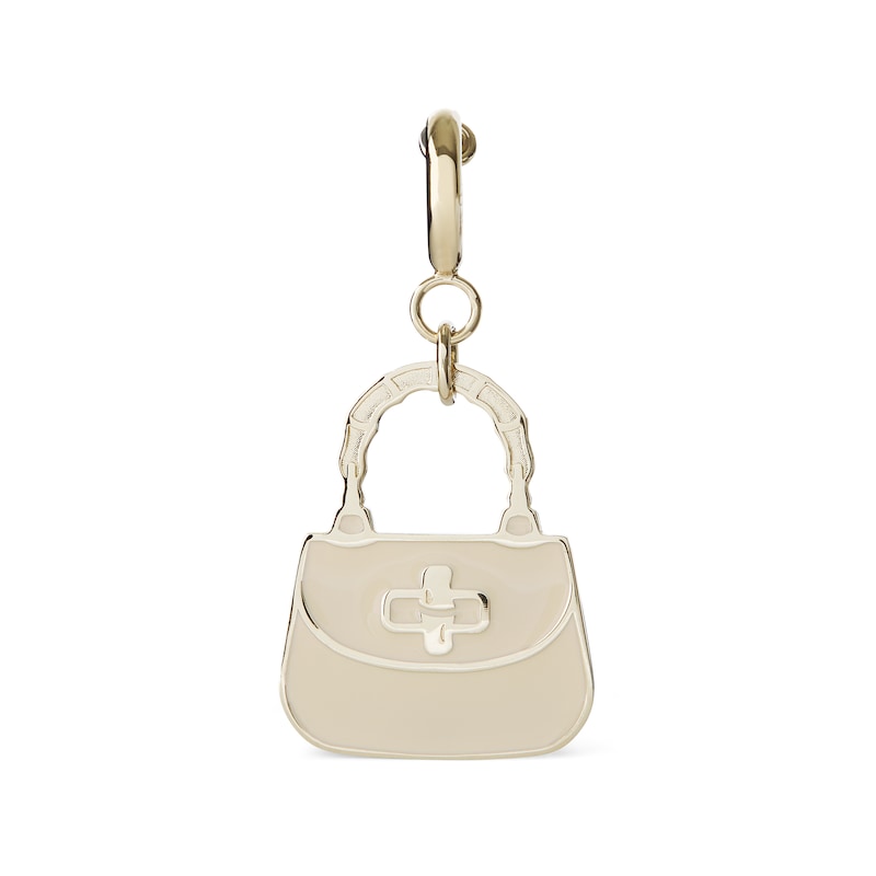 2025早秋系列推出多款配饰,卓力扬显品牌经典主题。这款手袋挂饰以珐琅工艺重现Gucci竹节手袋经典造型,致敬品牌经典廓形美学。