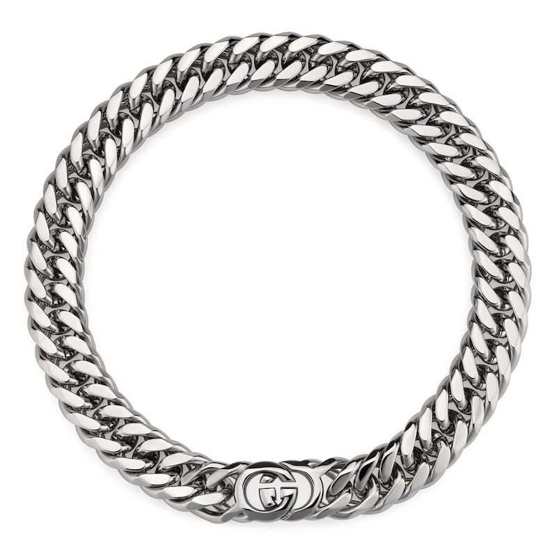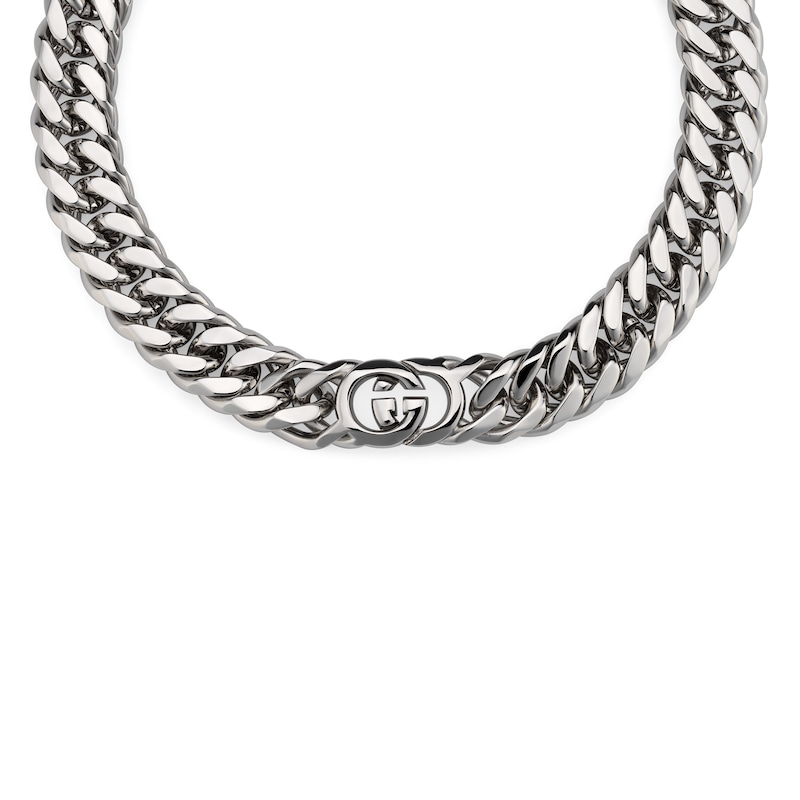 品牌经典图案化身为功能性磁扣装点Gucci Interlocking系列时尚珠宝。这款马衔索链项链匠心缀饰可打开的互扣式双G,佩戴轻松不费力。