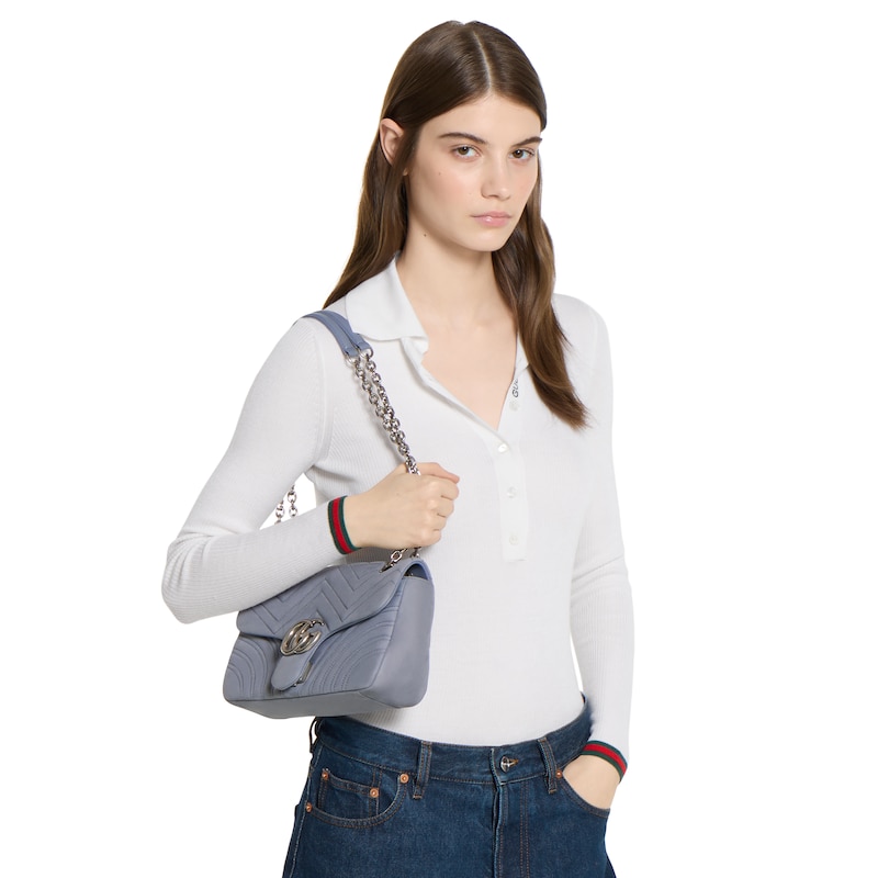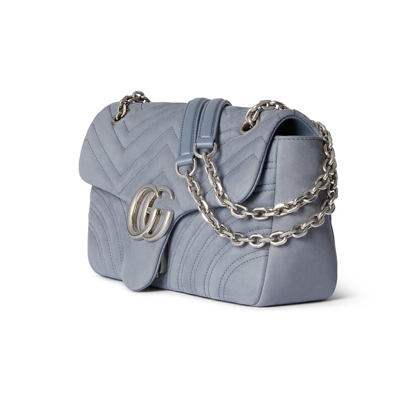 品牌标志性GG Marmont系列匠心融蕴双G造型配件和切面链式包带,甄选柔软皮革缔就线条柔和的包型。简约利落的后袋令中号和大号包袋更具实用性。