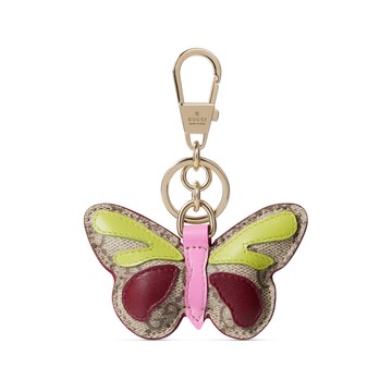 2025早秋系列推出多款配饰,卓力扬显活力主题。这款钥匙扣采用GG字母交织图案涂层织物打造,生动演绎蝴蝶造型,点缀浅金色调双G细节。